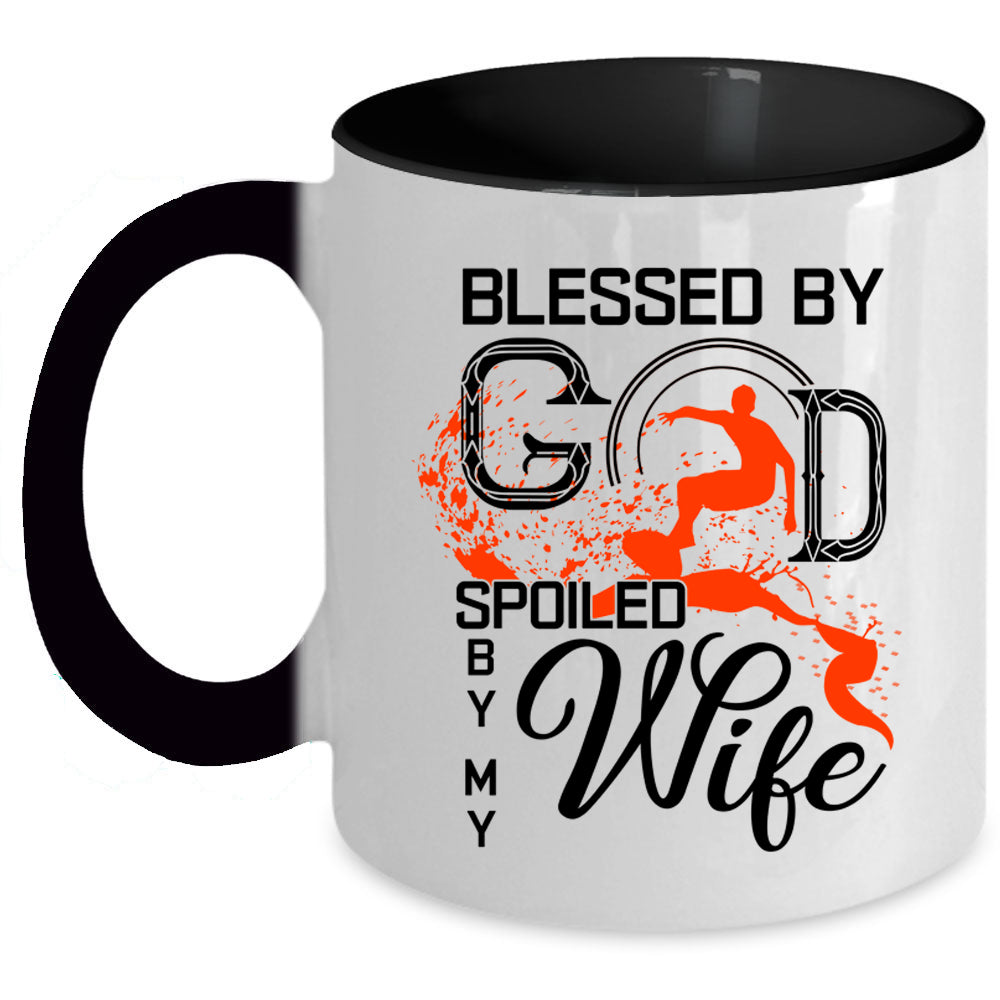 Marrying Coffee Mug, Blessed By God Spoiled By My Wife Accent Mug