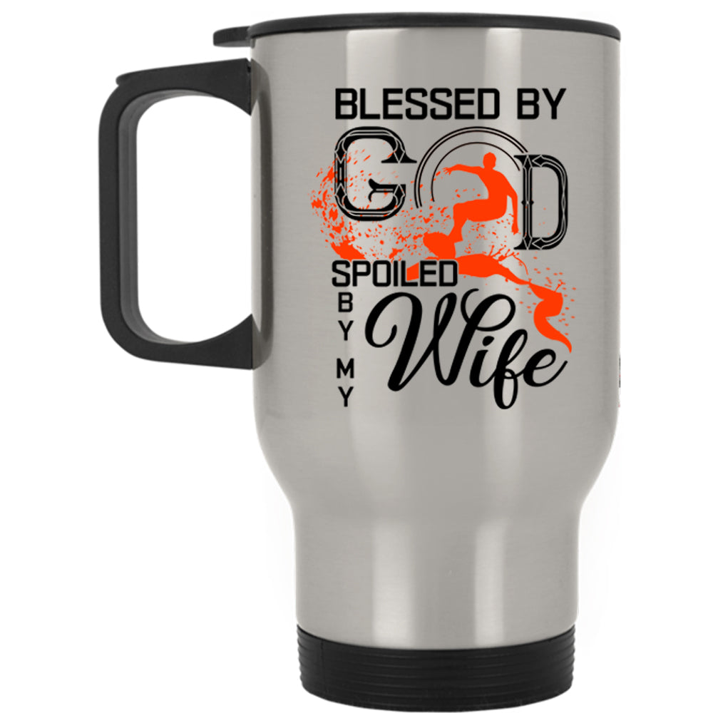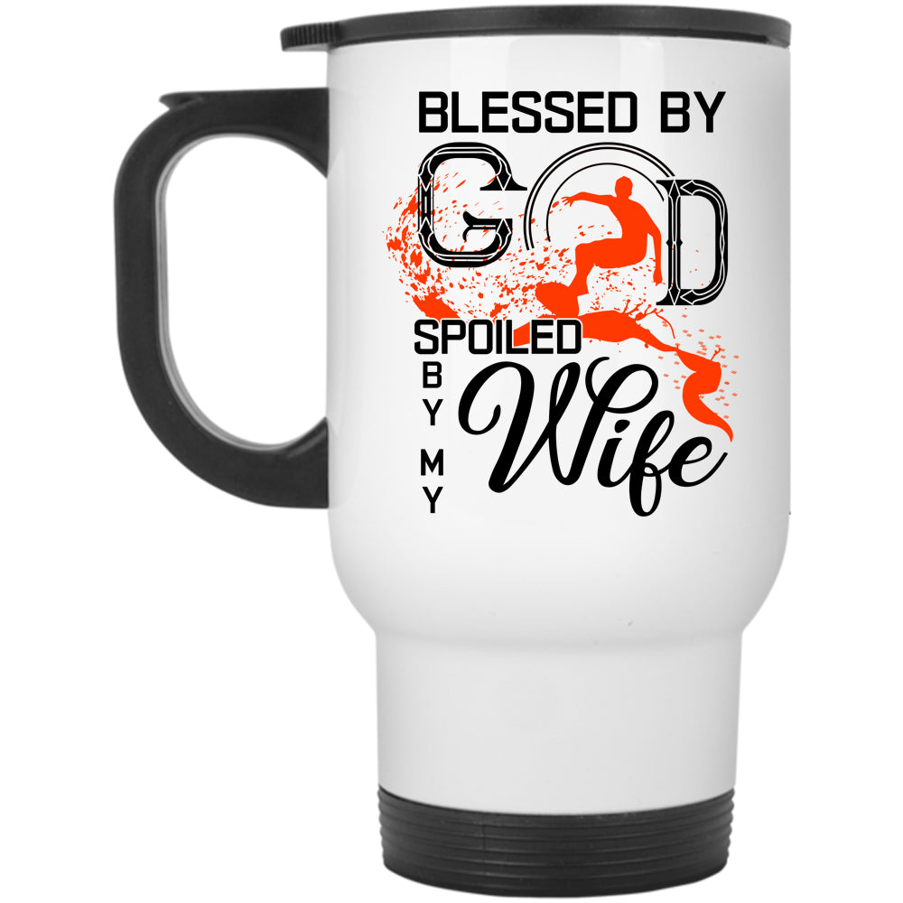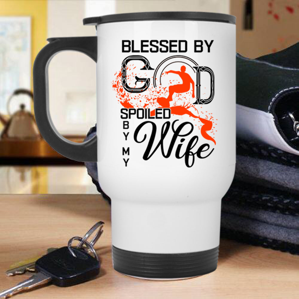 Marrying Travel Mug, Blessed By God Spoiled By My Wife Mug