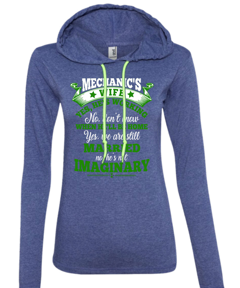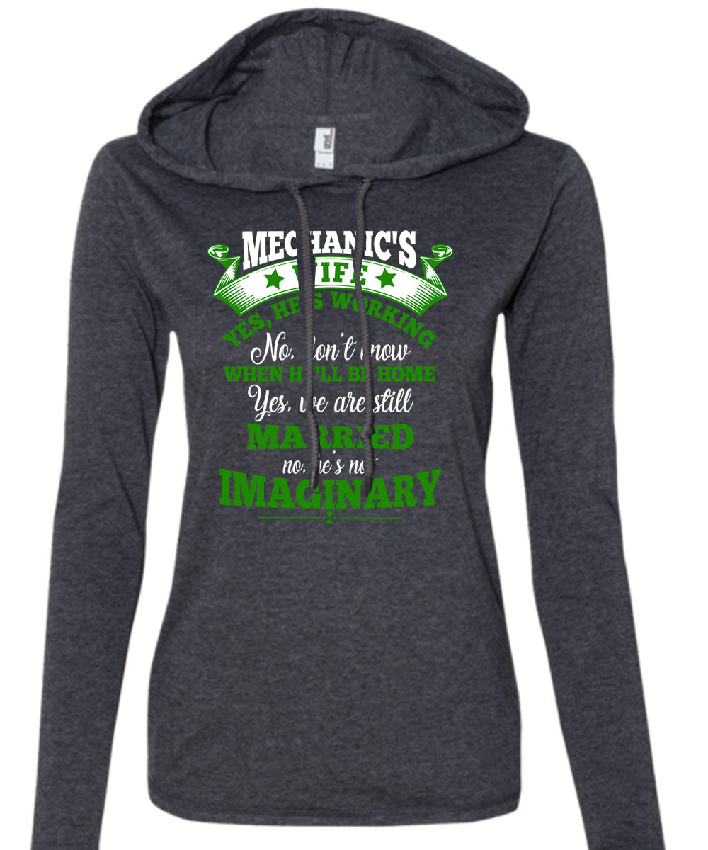 Mechanic's Wife He's Working T Shirt, He's Not Imaginary T Shirt (Anvil Ladies Ringspun Hooded)