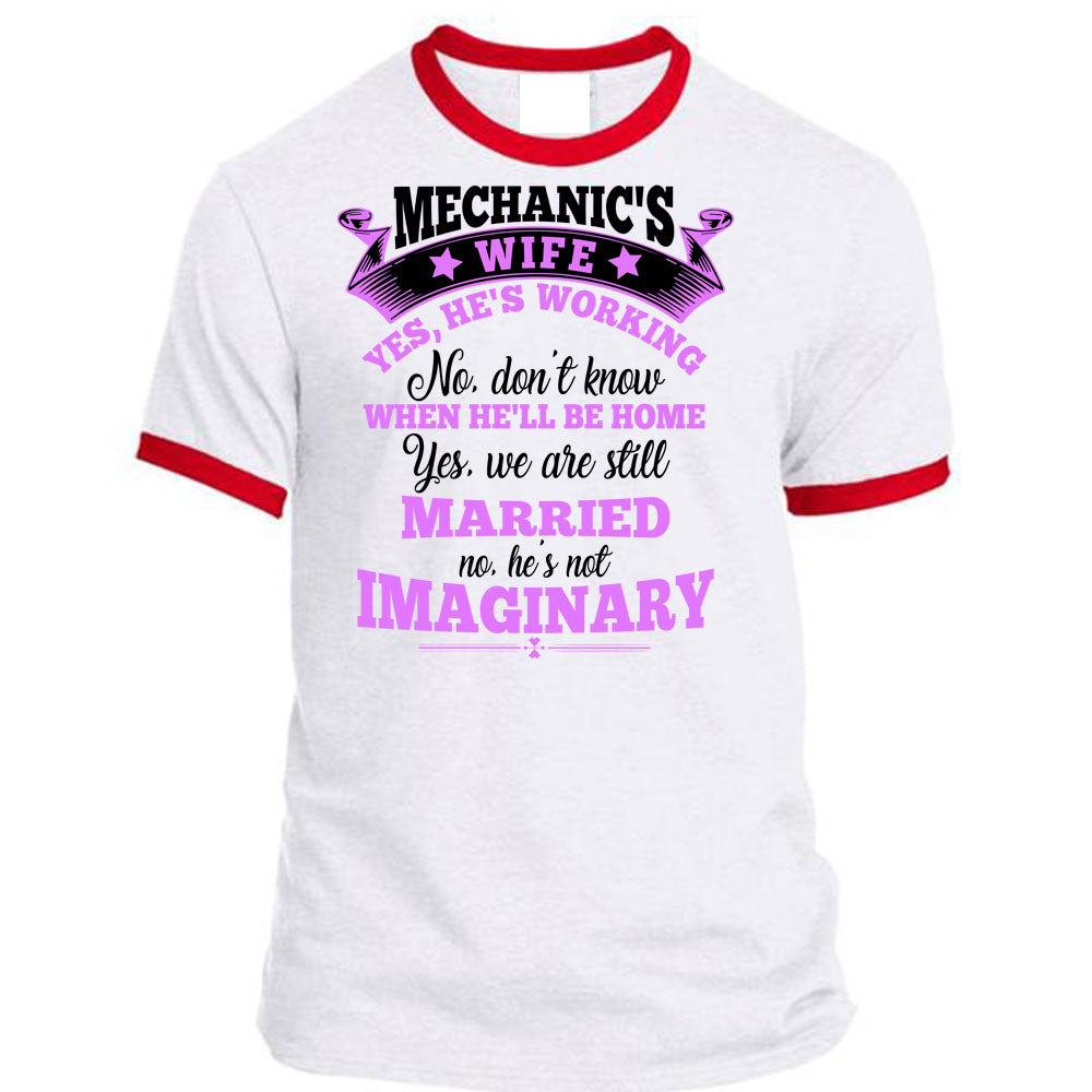 Mechanic's Wife He's Working T Shirt, I Love Mechanic T Shirt, Awesome T-Shirts
