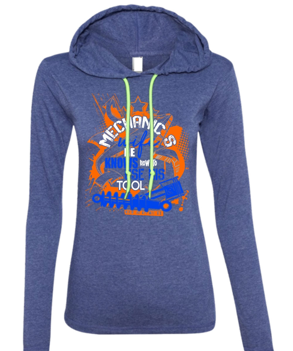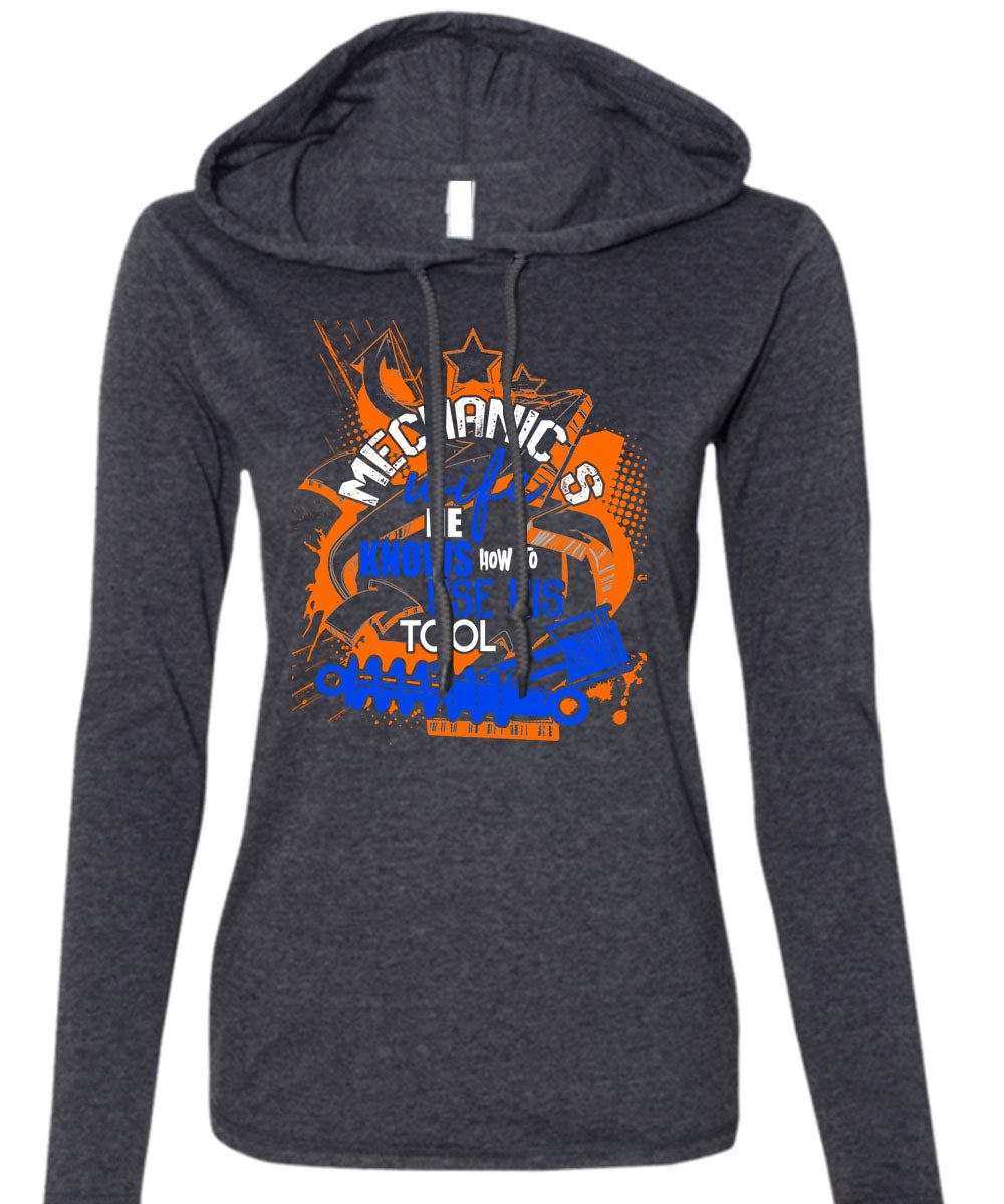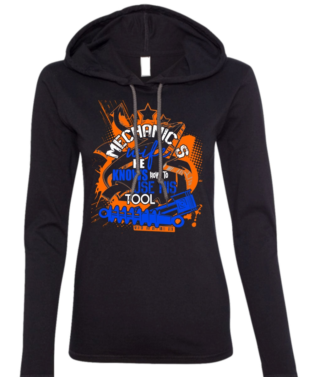 Mechanic's Wife T Shirt, He Knows How To Use His Tool T Shirt (Anvil Ladies Ringspun Hooded)