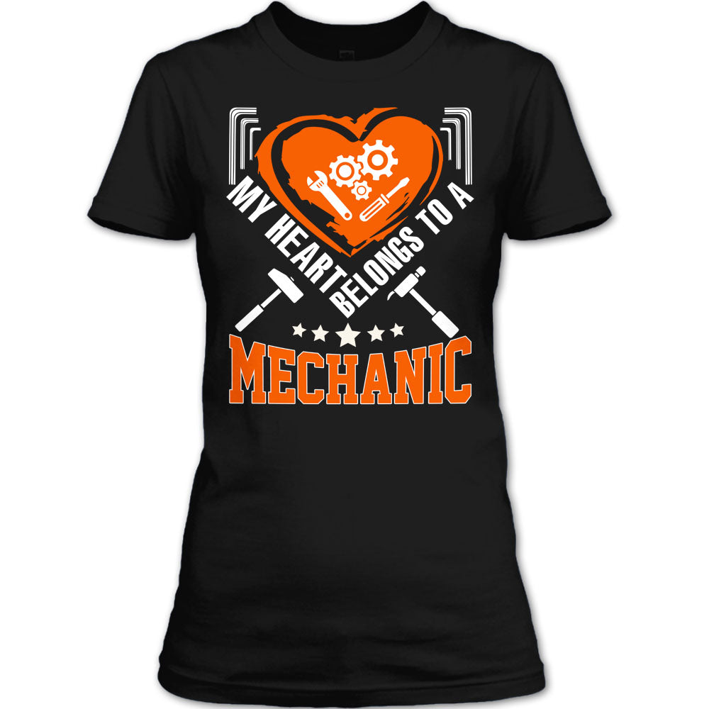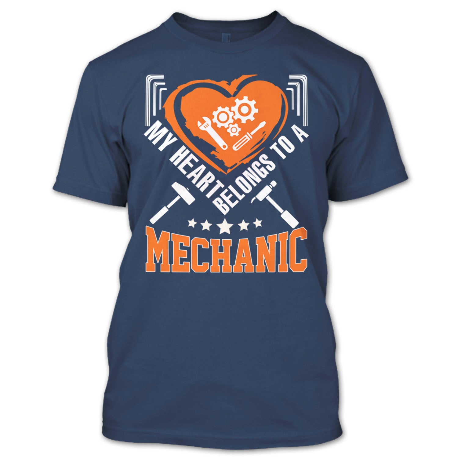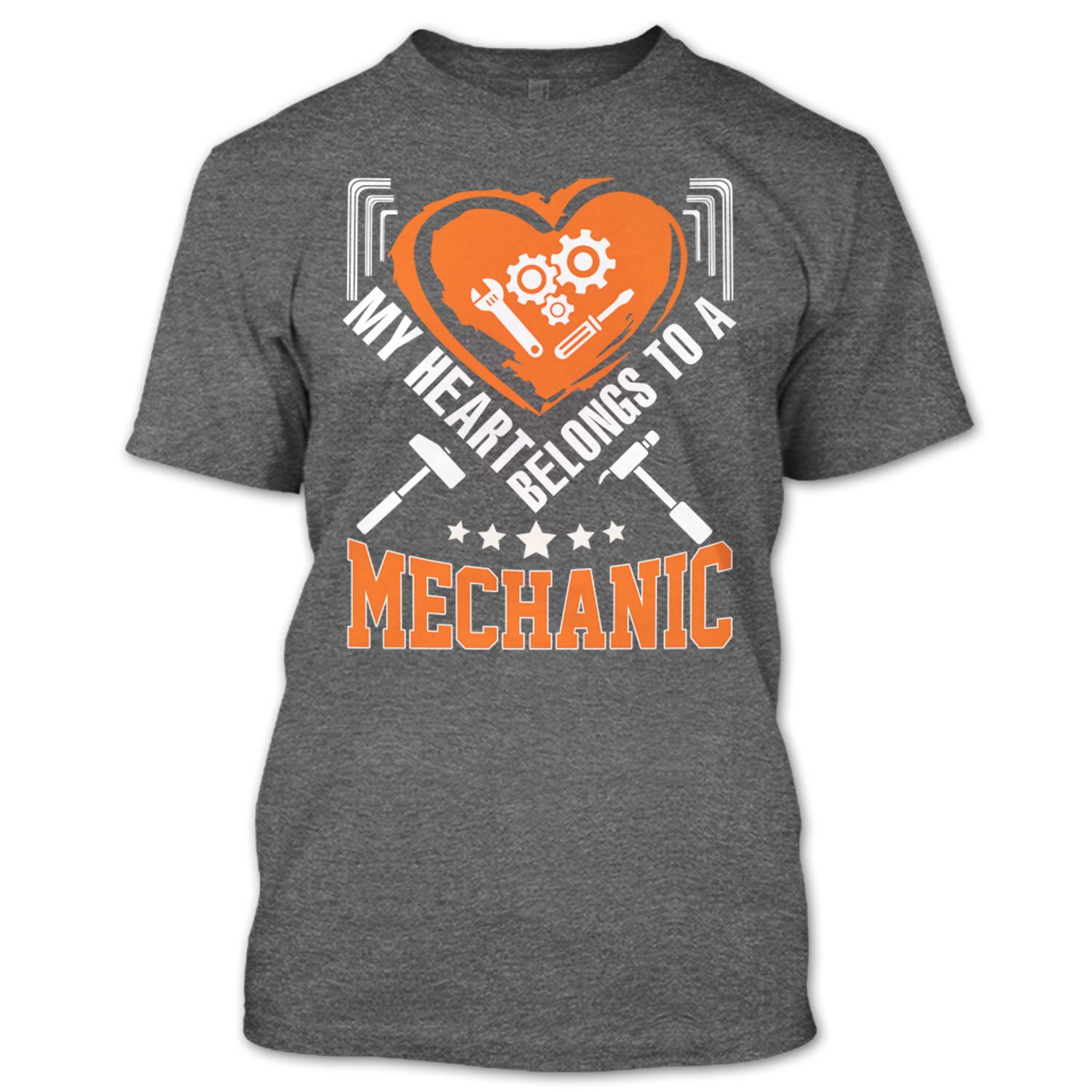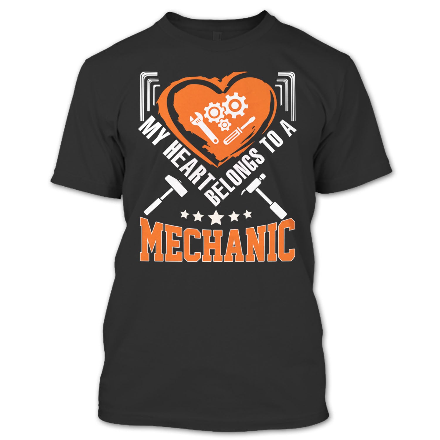 Mechanic's Wife T Shirt, My Heart Belongs To A Mechanic T Shirt