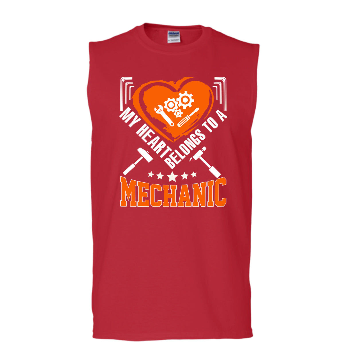 Mechanic's Wife T Shirt, My Heart Belongs To A Mechanic T Shirt, Cool T Shirt (Men's Cotton Sleeveless)