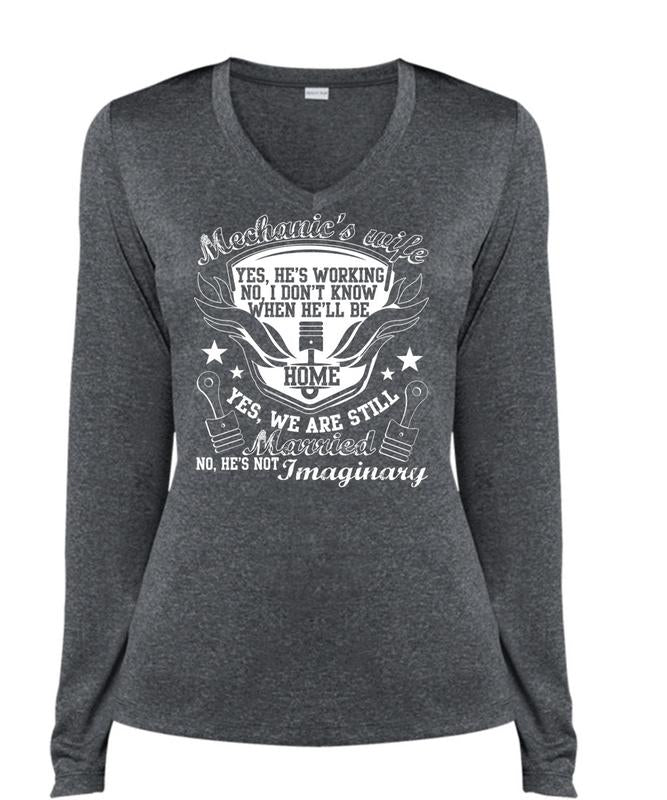 Mechanic's Wife T Shirt, We Are Still Married T Shirt, Cool Shirt (Ladies LS Heather V-Neck)