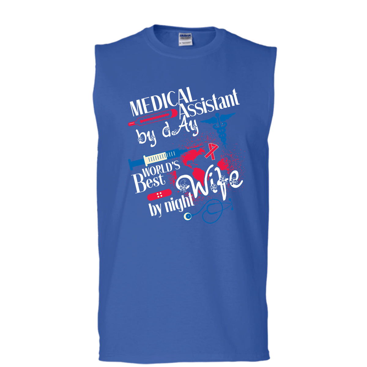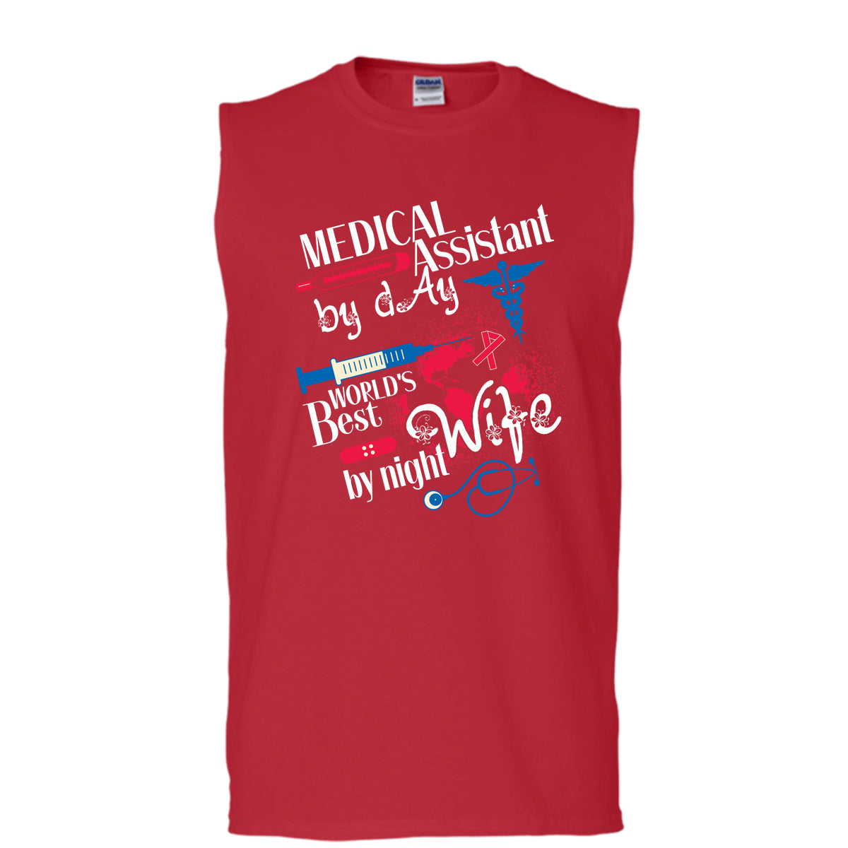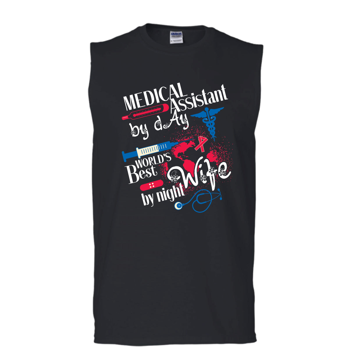 Medical Assistant By Day T Shirt, World's Best Wife By Night T Shirt, Cool T Shirt (Men's Cotton Sleeveless)
