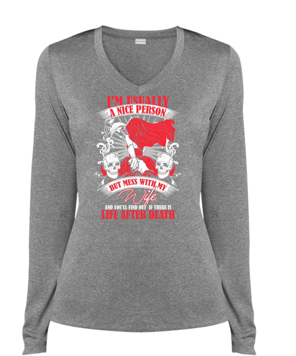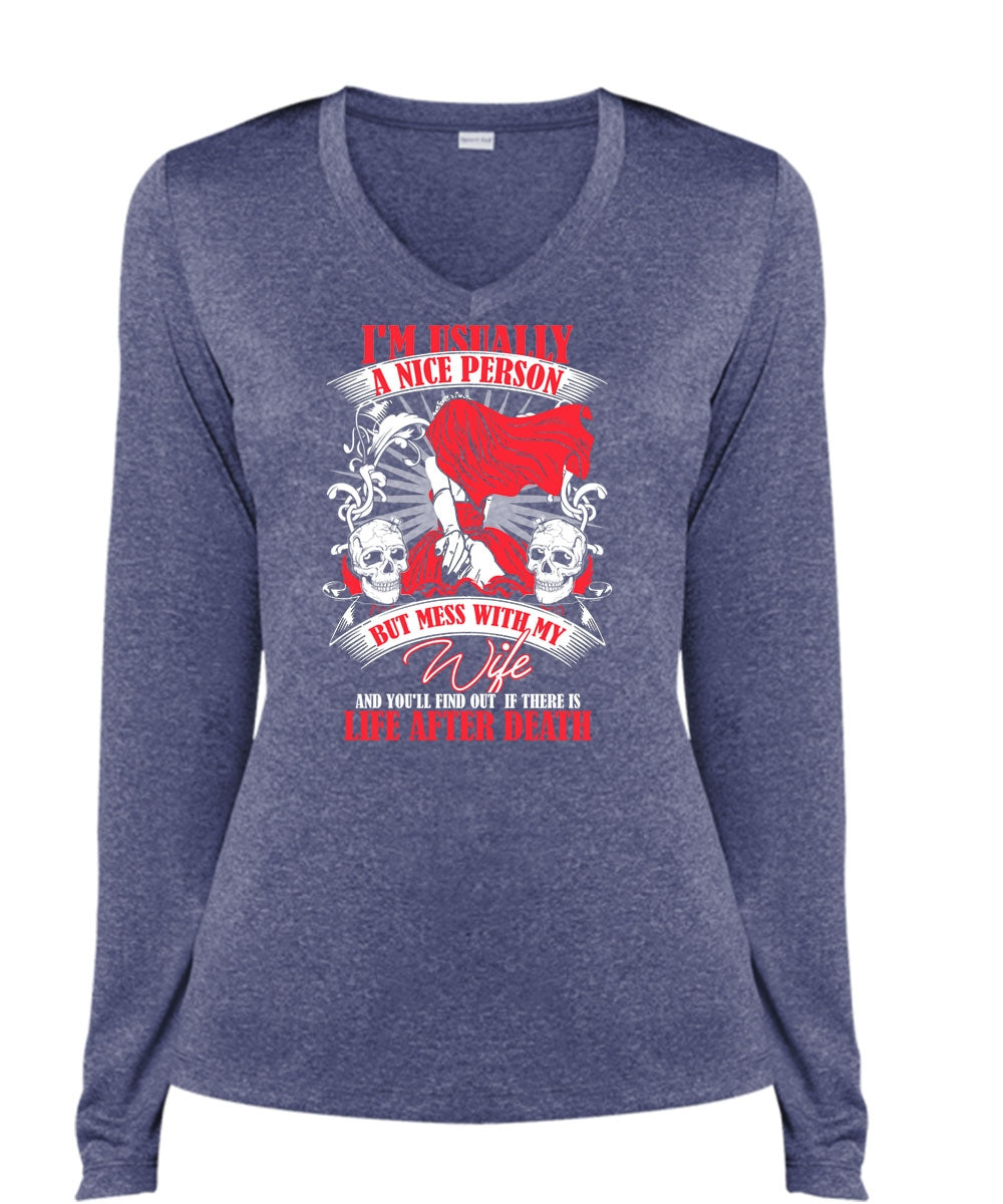 Mess With My Wife T Shirt, Life After Death T Shirt, Cool Shirt (Ladies LS Heather V-Neck)
