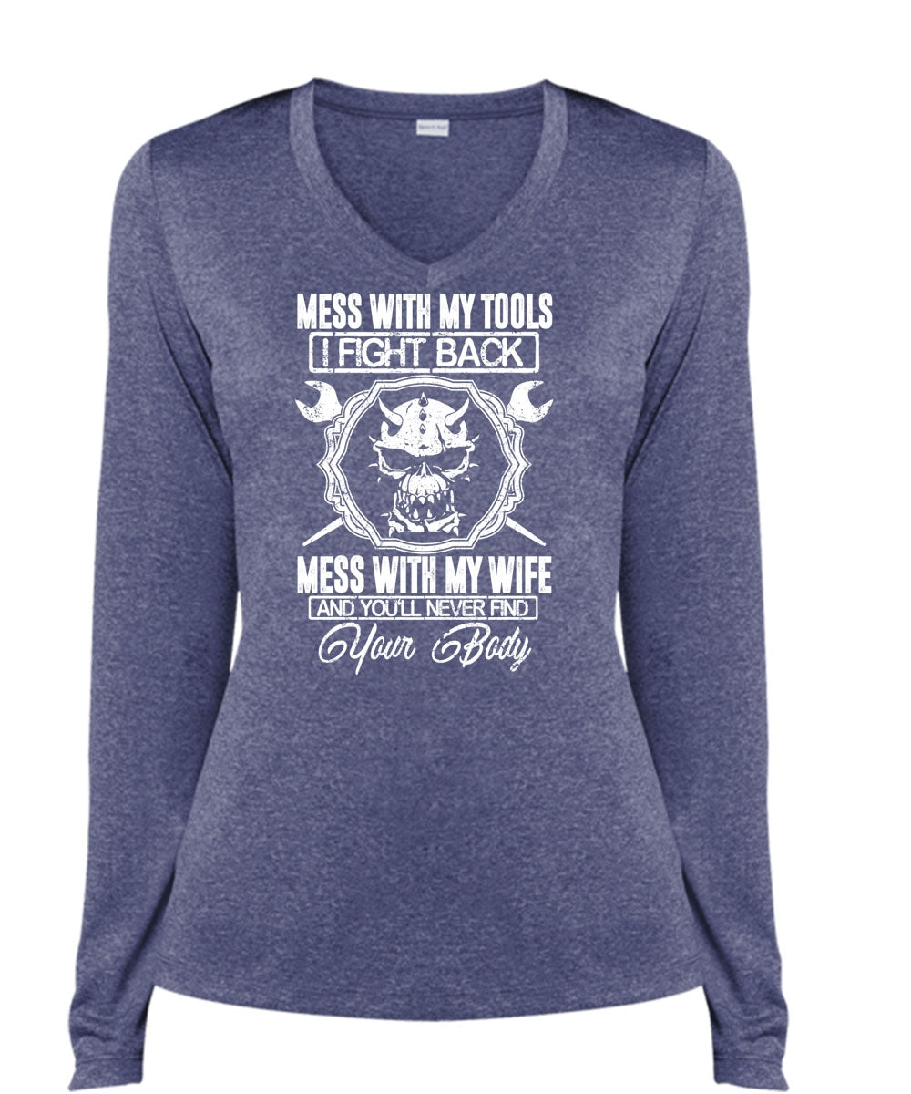 Mess With My Wife T Shirt, Mess With My Tools T Shirt, Cool Shirt (Ladies LS Heather V-Neck)