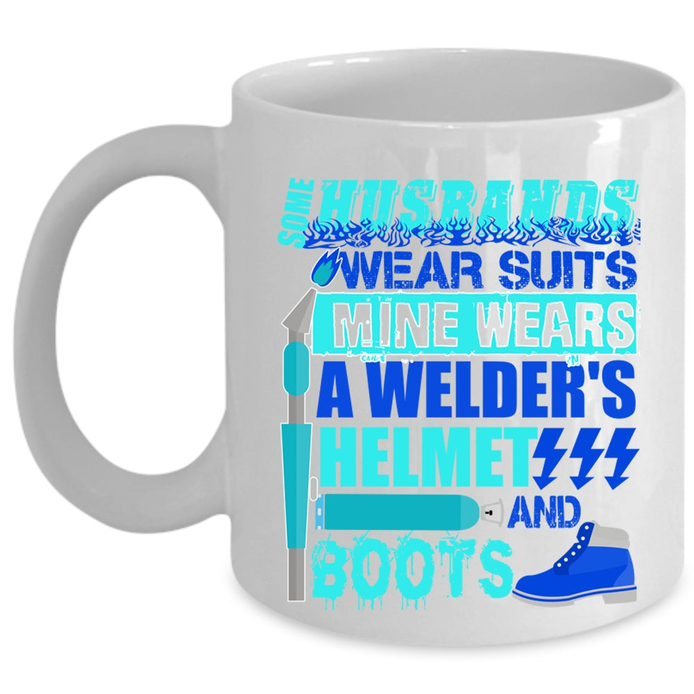 Mine Wears A Welder's Helmet And Boots Coffee Mug, Some Husband Wear Suits Cup