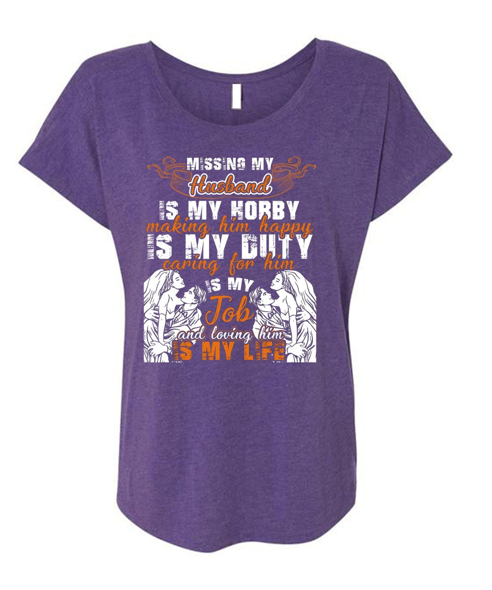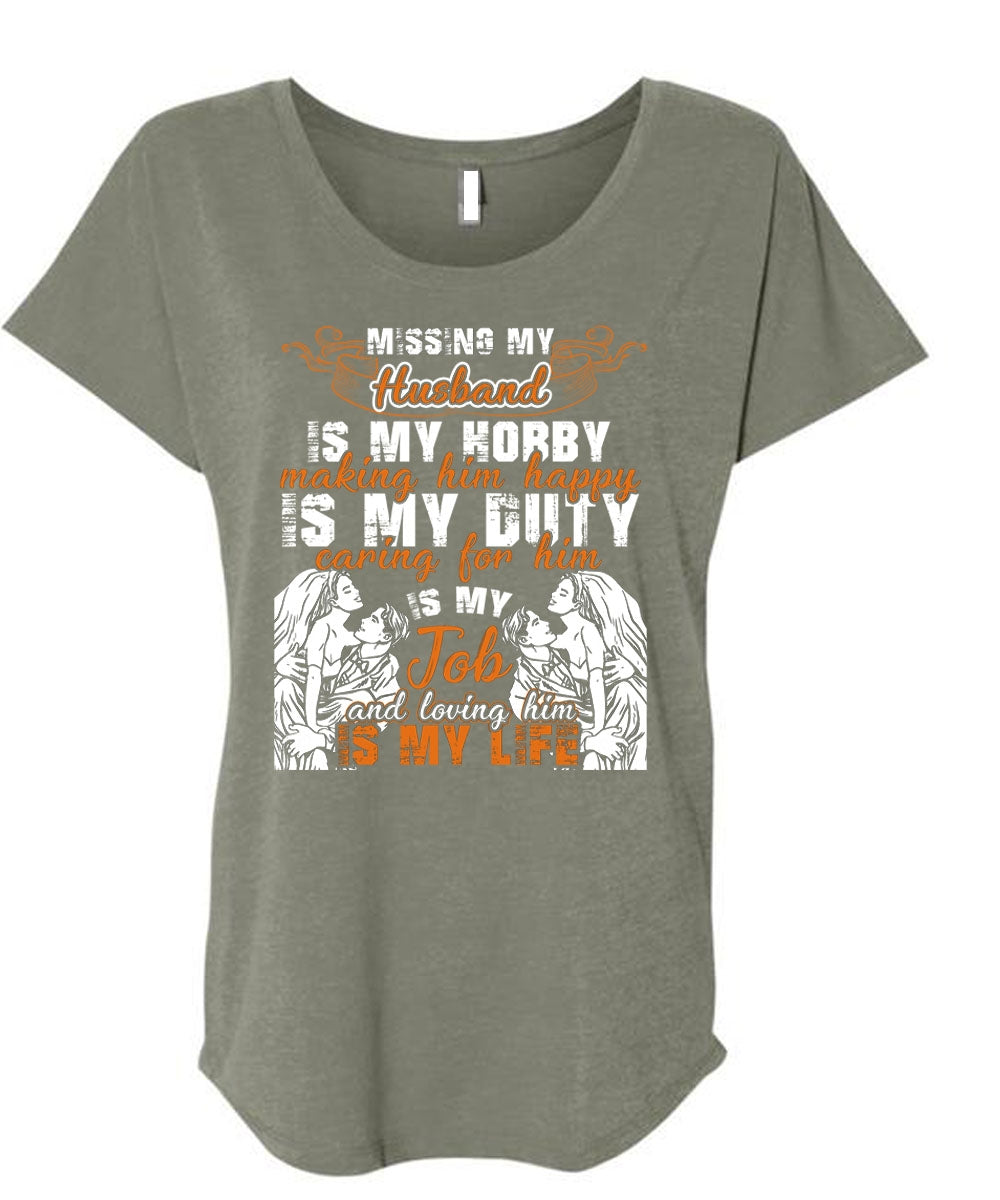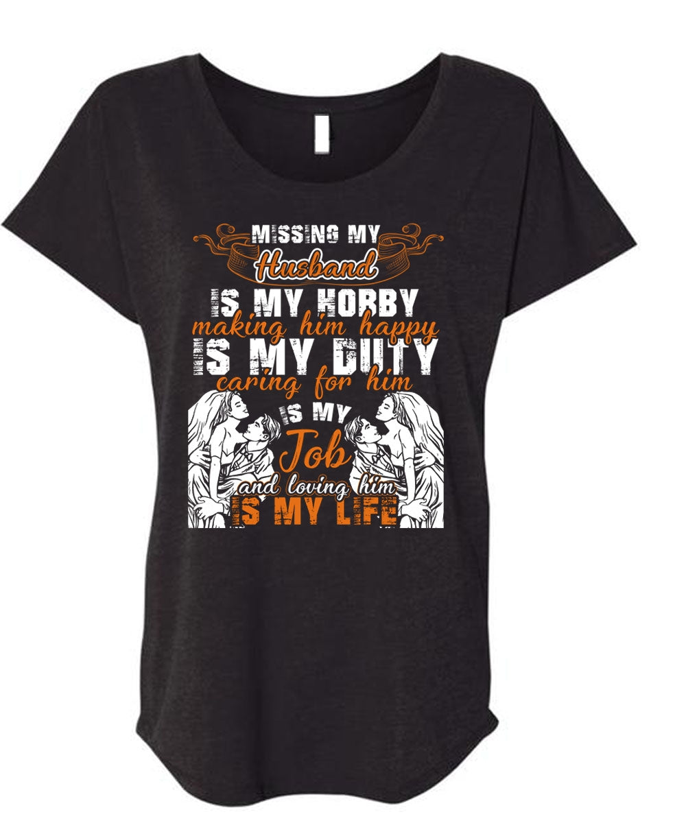 Missing My Husband T Shirt, Loving Him Is My Life T Shirt, Cool Shirt (Ladies' Triblend Dolman Sleeve)