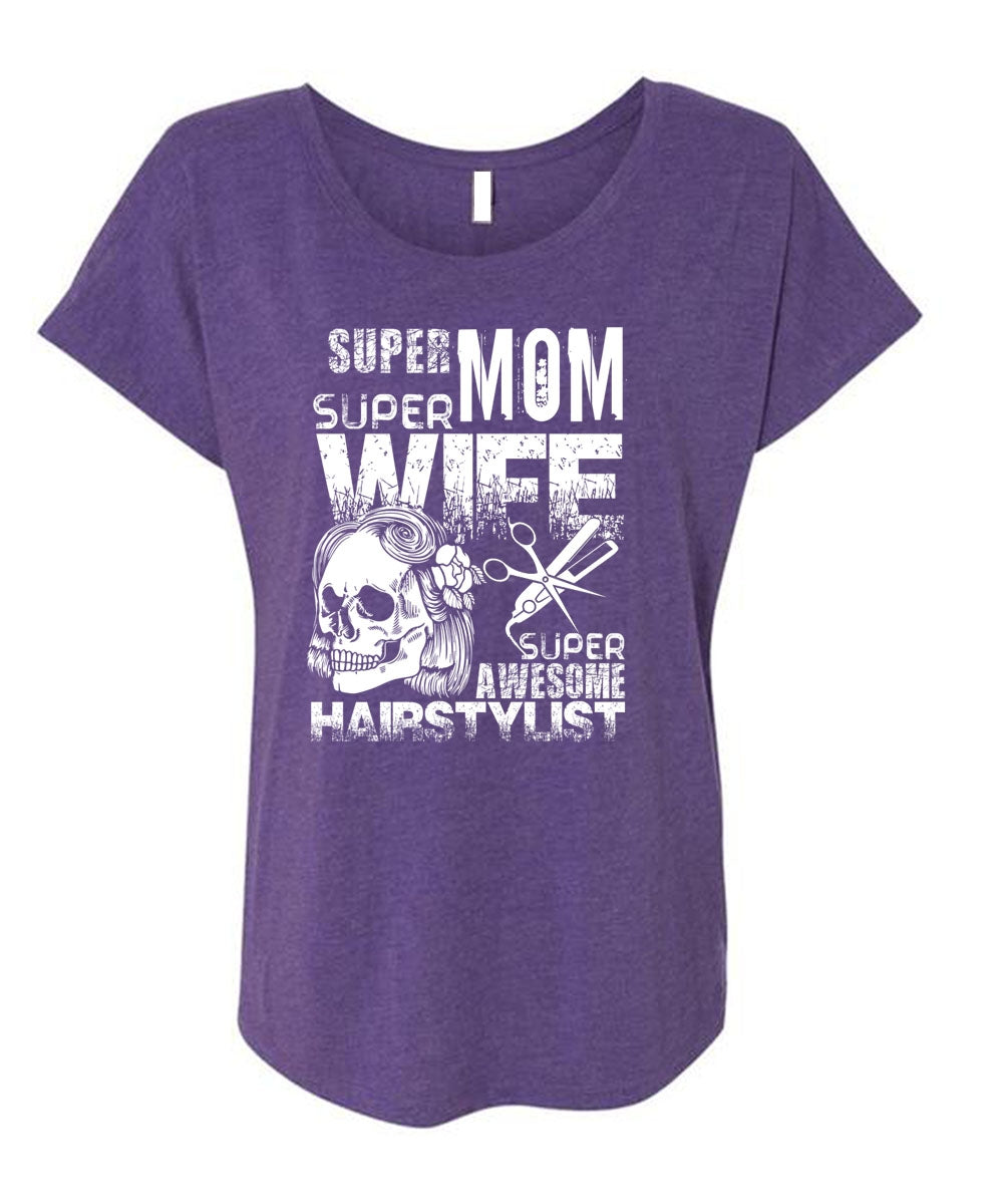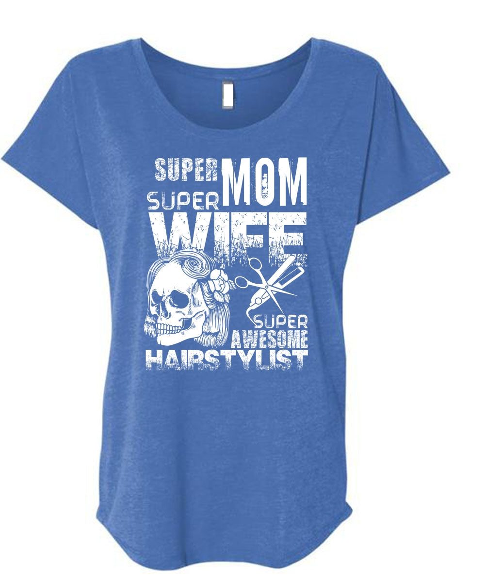 Mom Wife Awesome Hair Stylist T Shirt, Being A Hair Stylist T Shirt, Cool Shirt (Ladies' Triblend Dolman Sleeve)