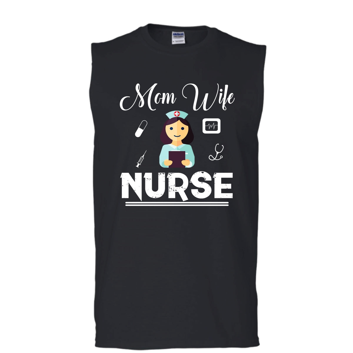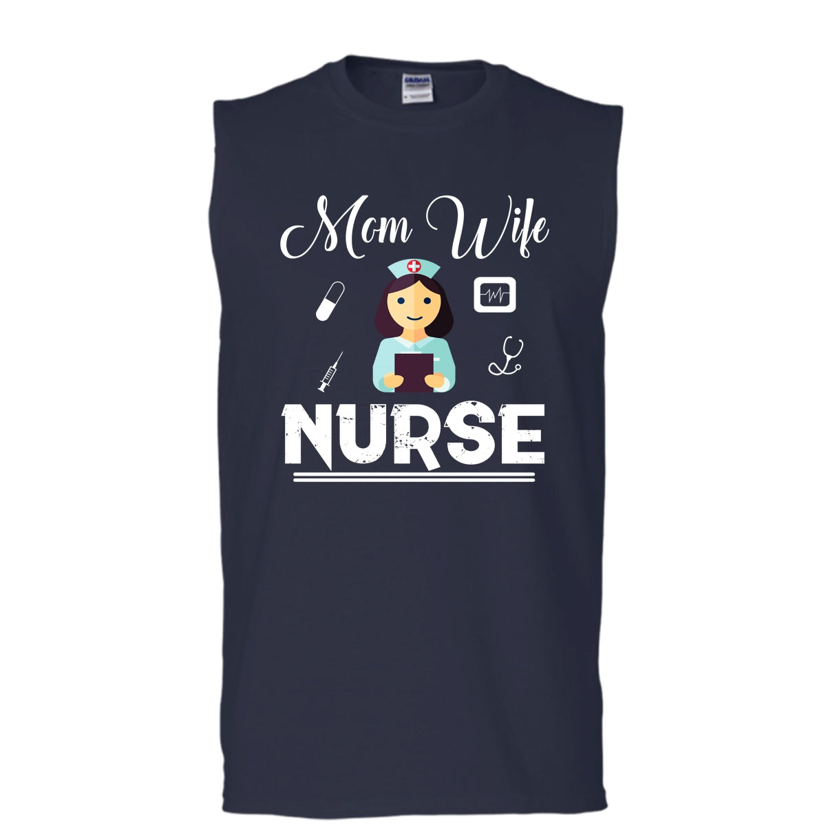 Mom Wife Nurse Shirt, I Am A Nurse Mom Shirt (Men's Cotton Sleeveless)