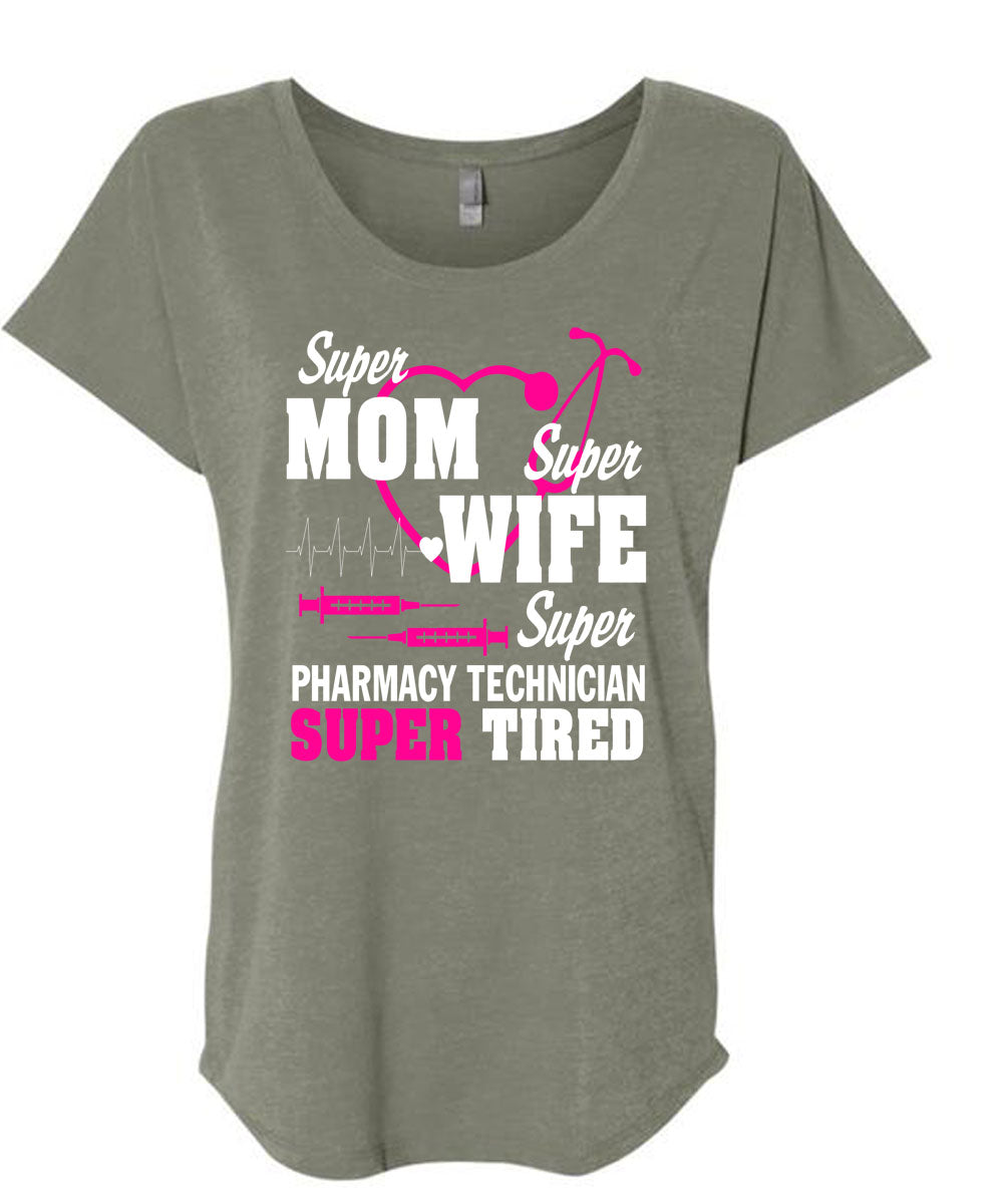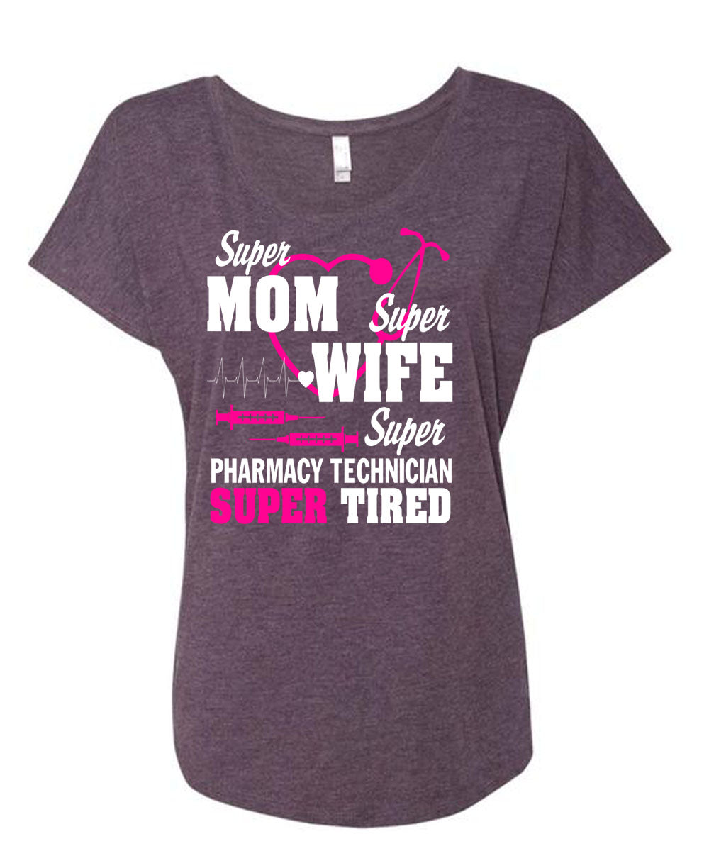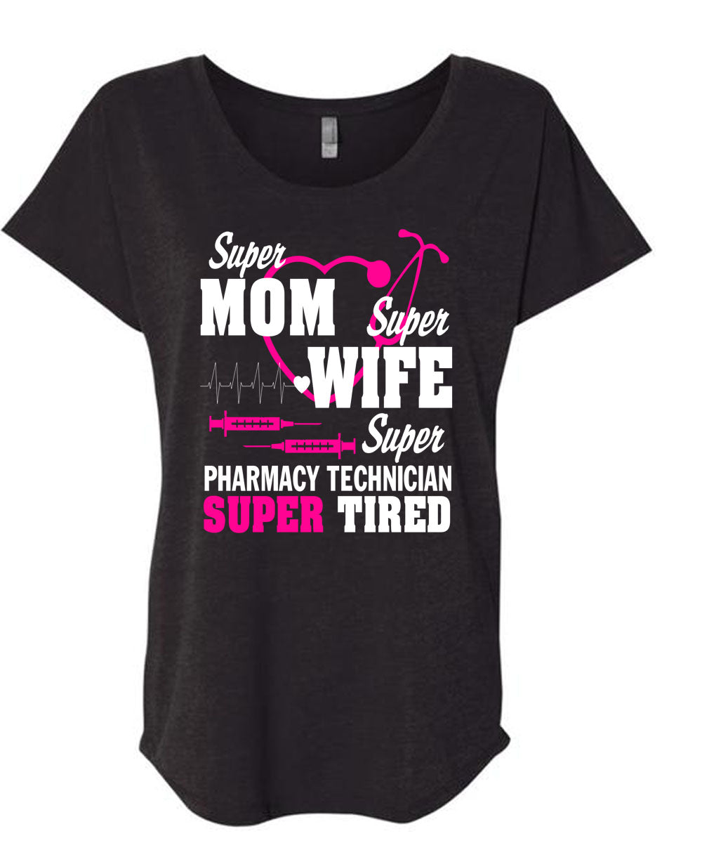 Mom Wife Pharmacy Technician T Shirt, Being A Doctor T Shirt, Cool Shirt (Ladies' Triblend Dolman Sleeve)