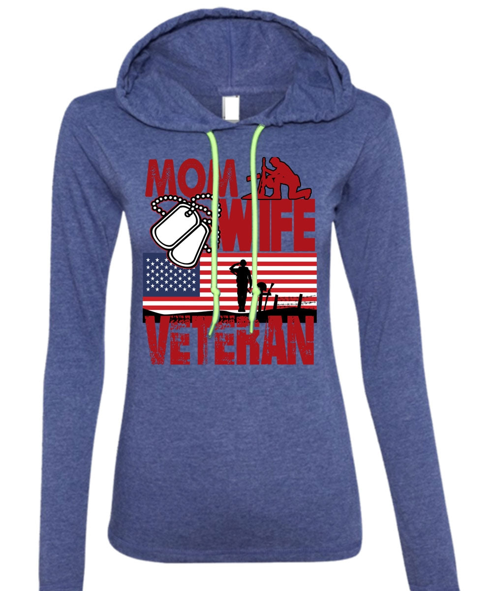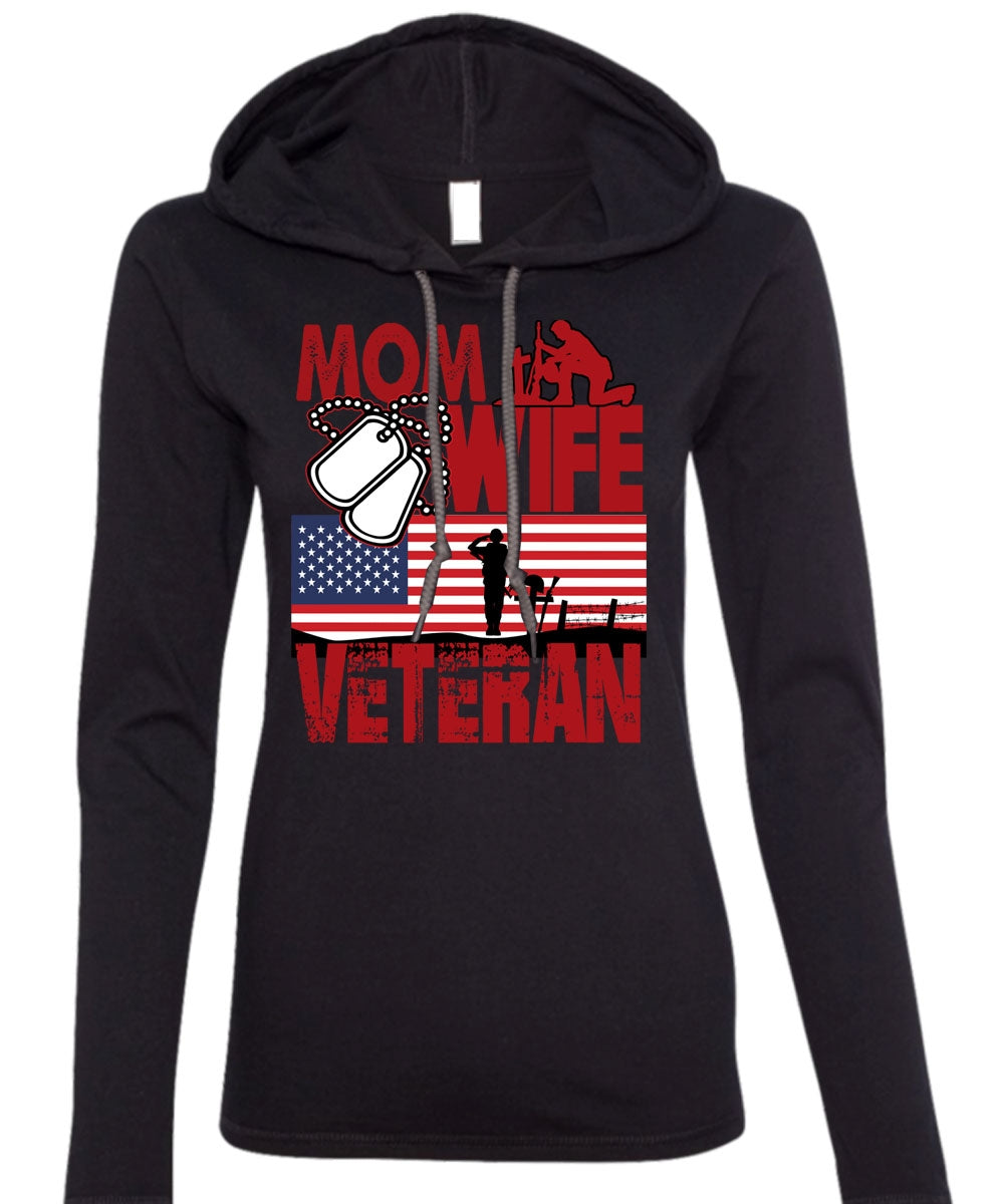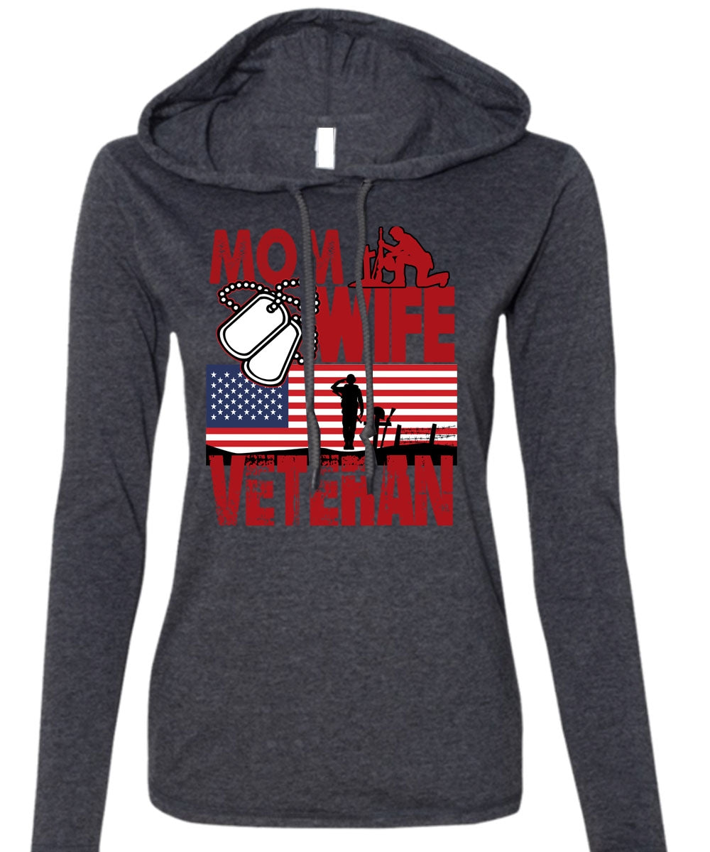 Mom Wife Veteran T Shirt, Being A Veteran T Shirt (Anvil Ladies Ringspun Hooded)