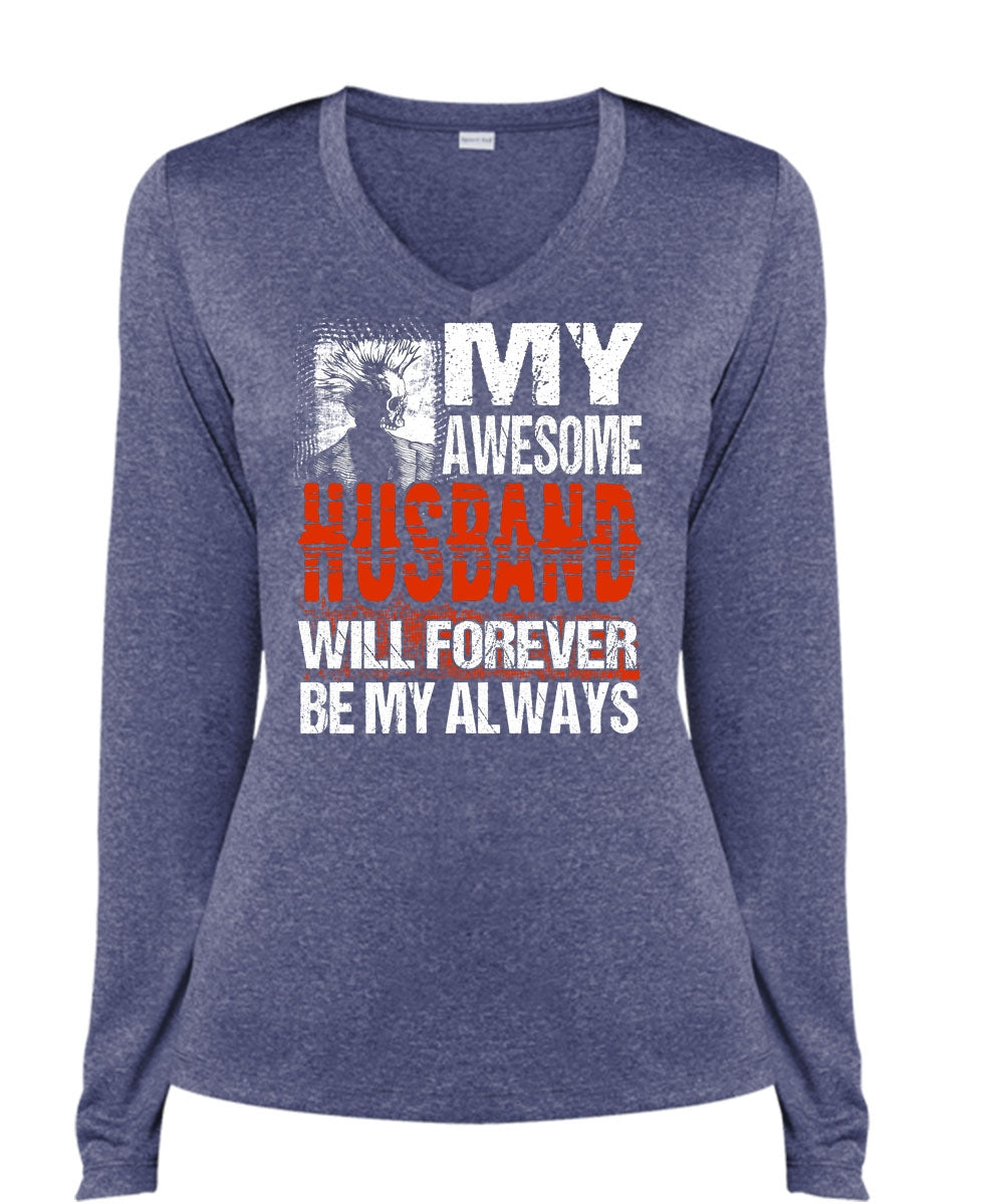 My Awesome Husband T Shirt, Being A Husband T Shirt, Cool Shirt (Ladies LS Heather V-Neck)