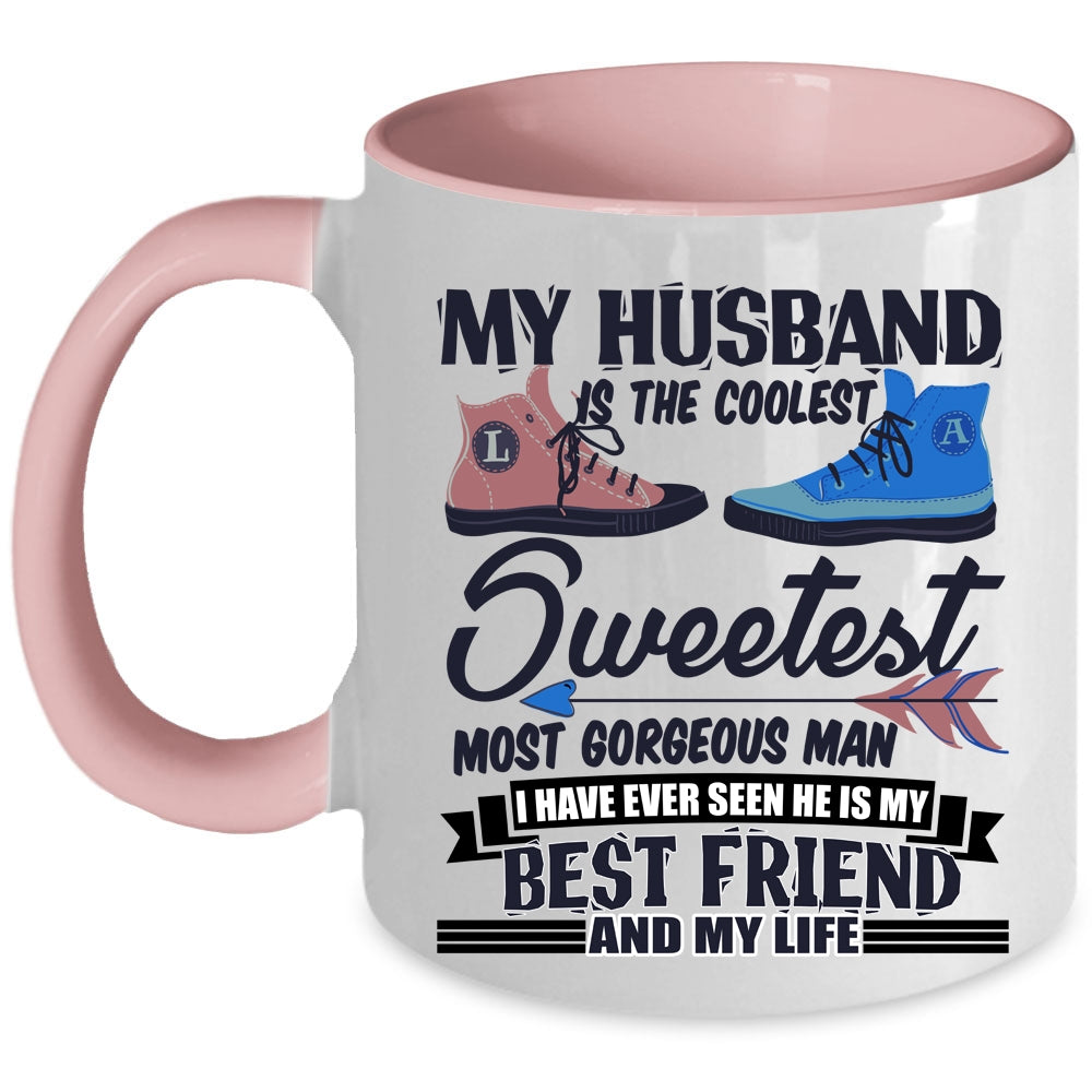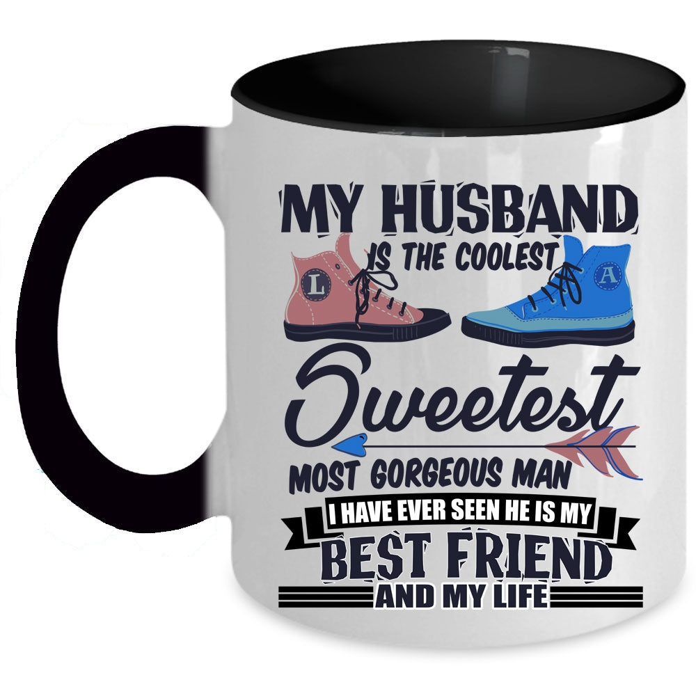 My Best Friend And My Life Coffee Mug, My Husband Is The Coolest Man Accent Mug