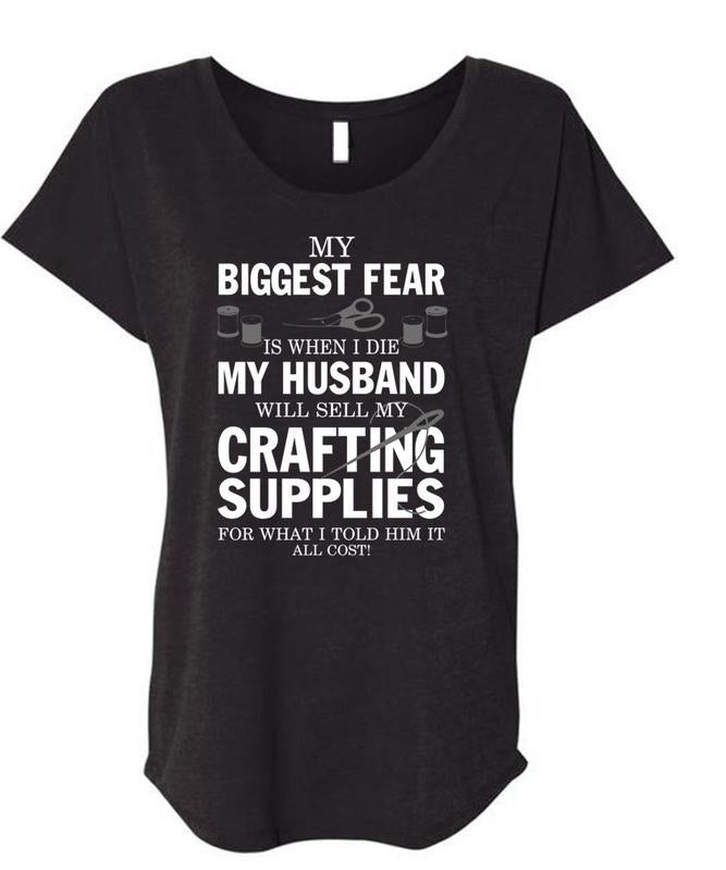 My Biggest Fear T Shirt, My Husband Will Sell My Crafting T Shirt, Cool Shirt (Ladies' Triblend Dolman Sleeve)