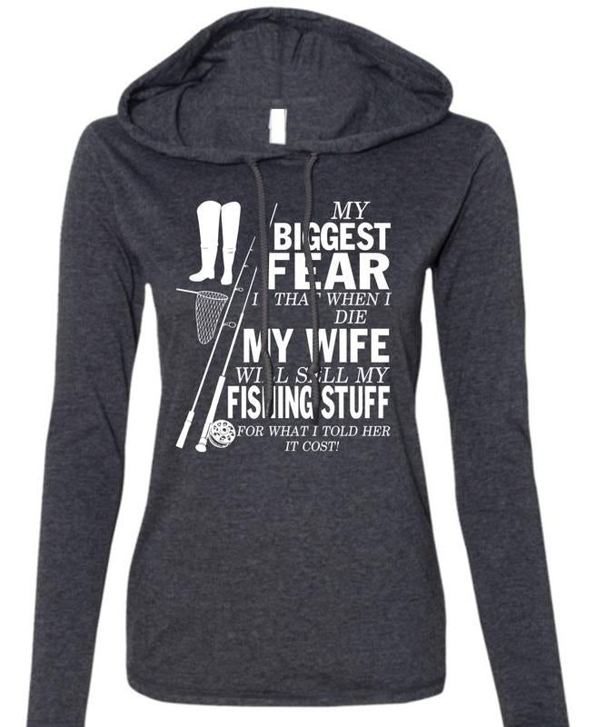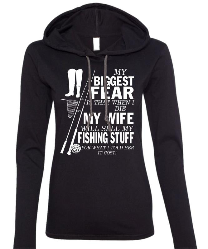 My Biggest Fear T Shirt, My Wife Will Sell My Fishing T Shirt (Anvil Ladies Ringspun Hooded)