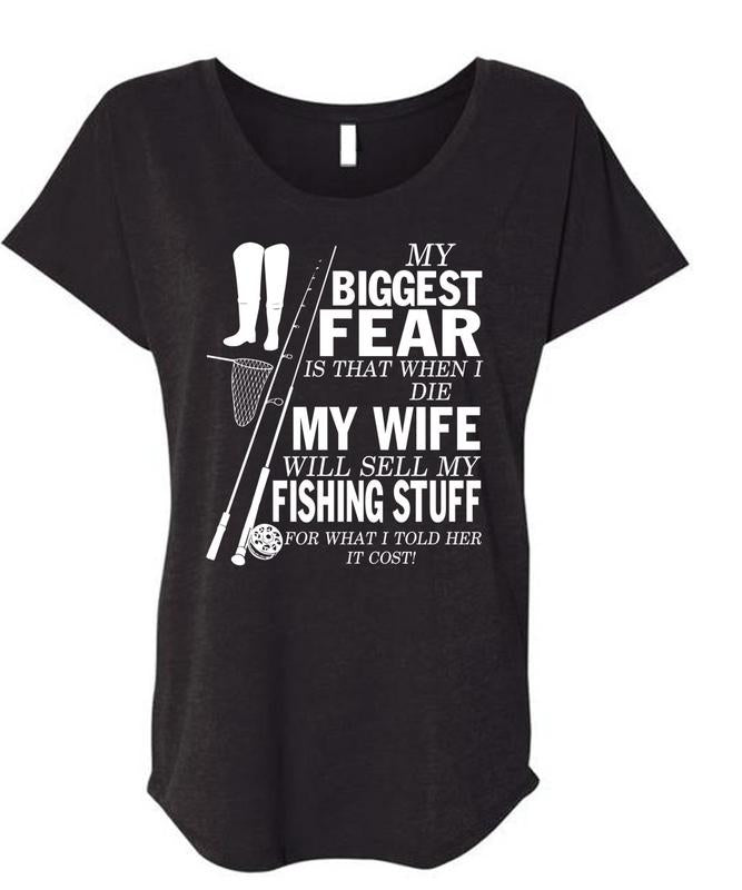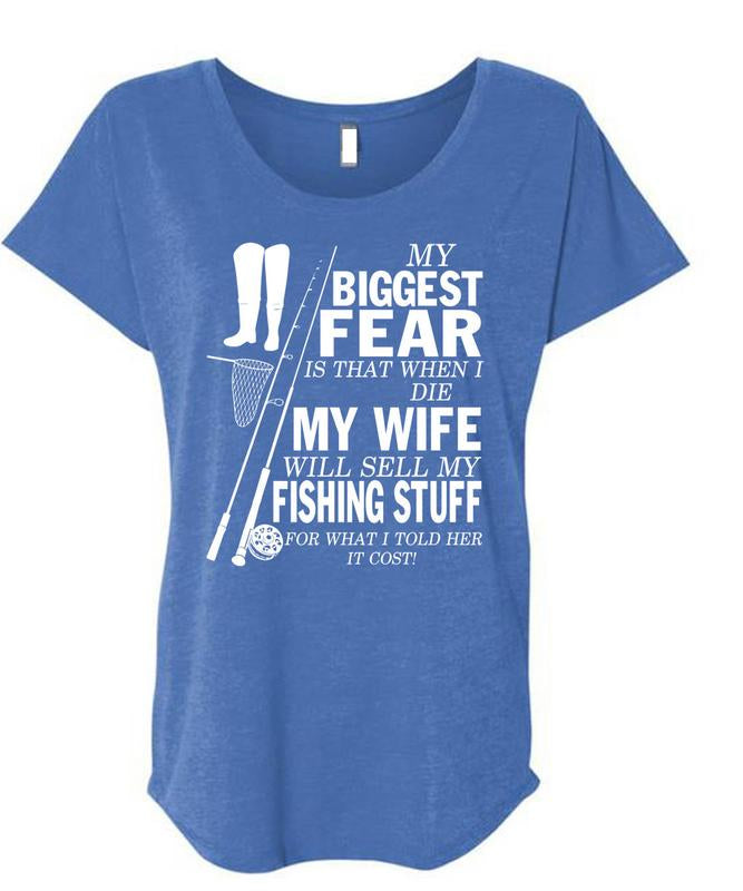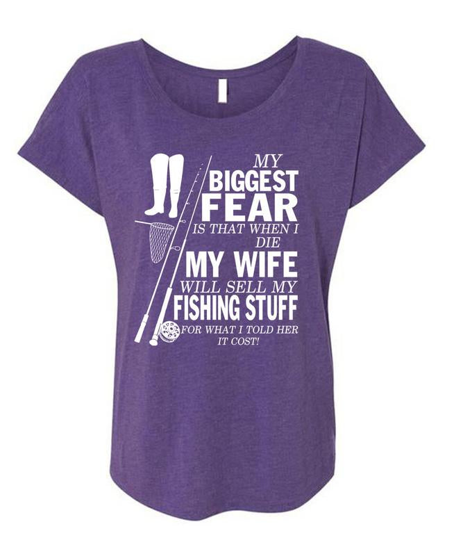 My Biggest Fear T Shirt, My Wife Will Sell My Fishing T Shirt, Cool Shirt (Ladies' Triblend Dolman Sleeve)