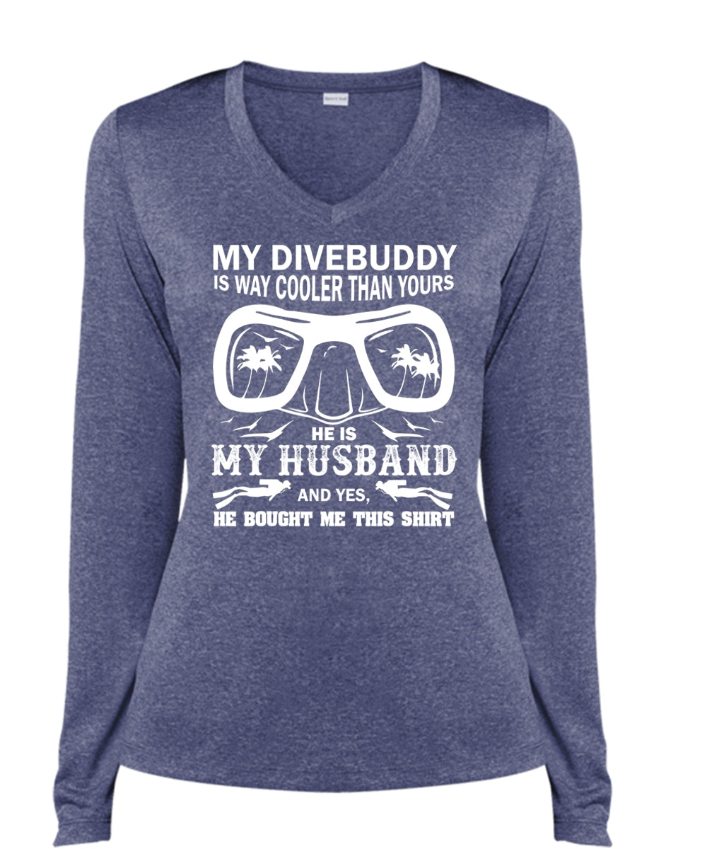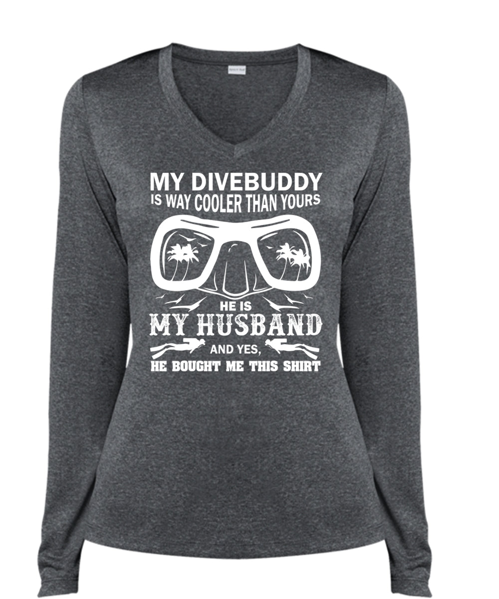 My Dive Buddy Is Way Cooler Than Yours T Shirt, Sport T Shirt, He Is My Husband T Shirt (Ladies LS Heather V-Neck)