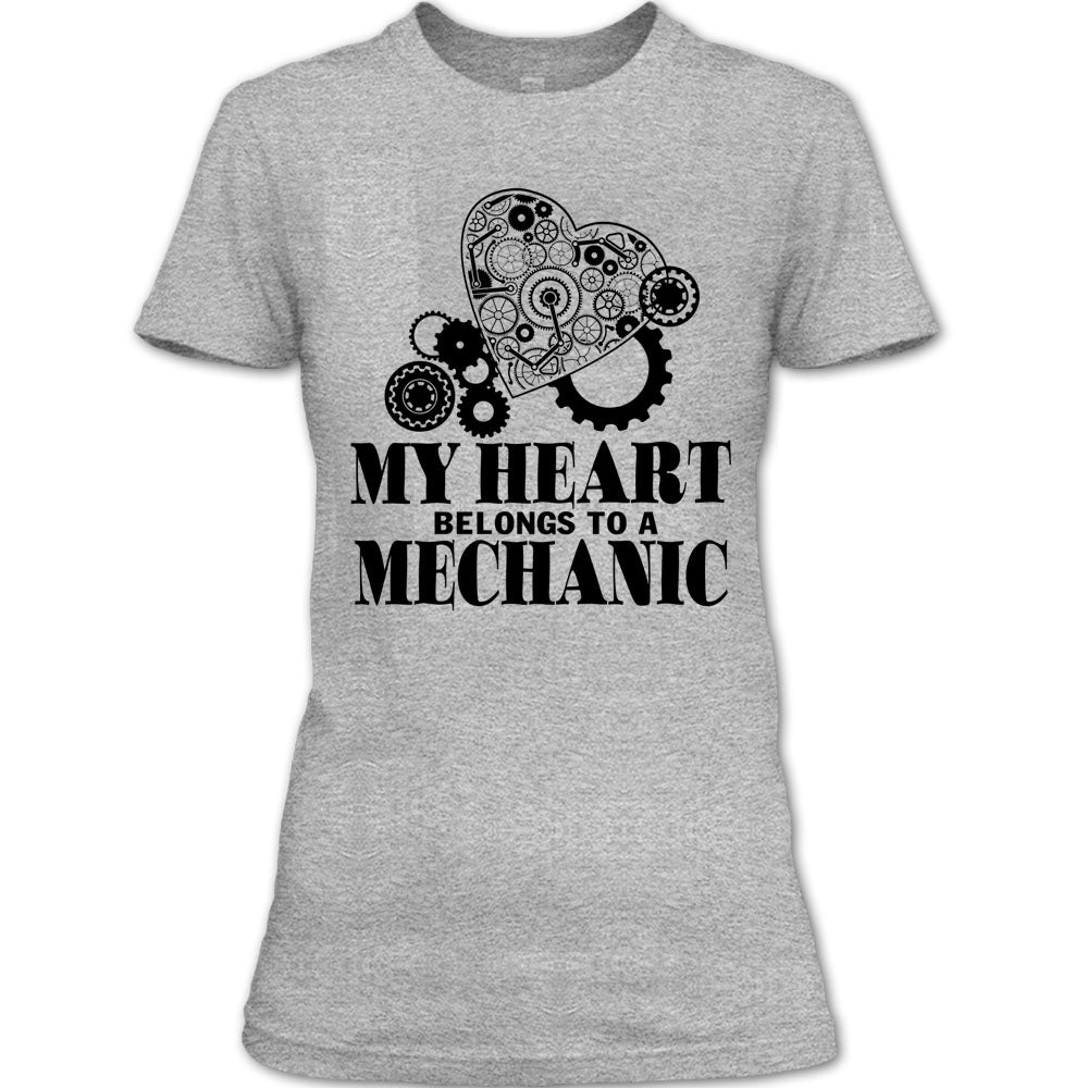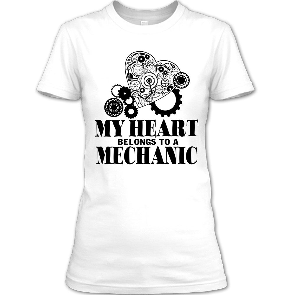 My Heart Belongs To A Mechanic T Shirt, Mechanic Husband T Shirt