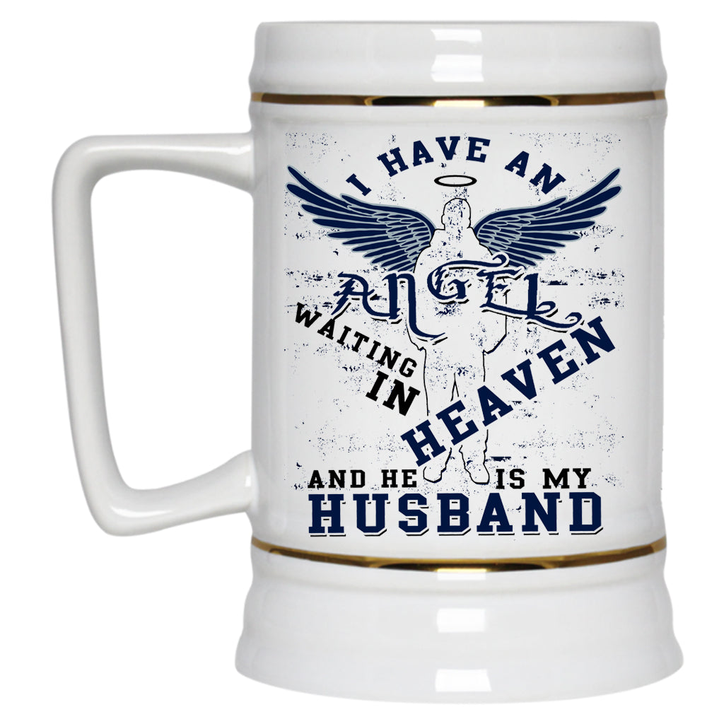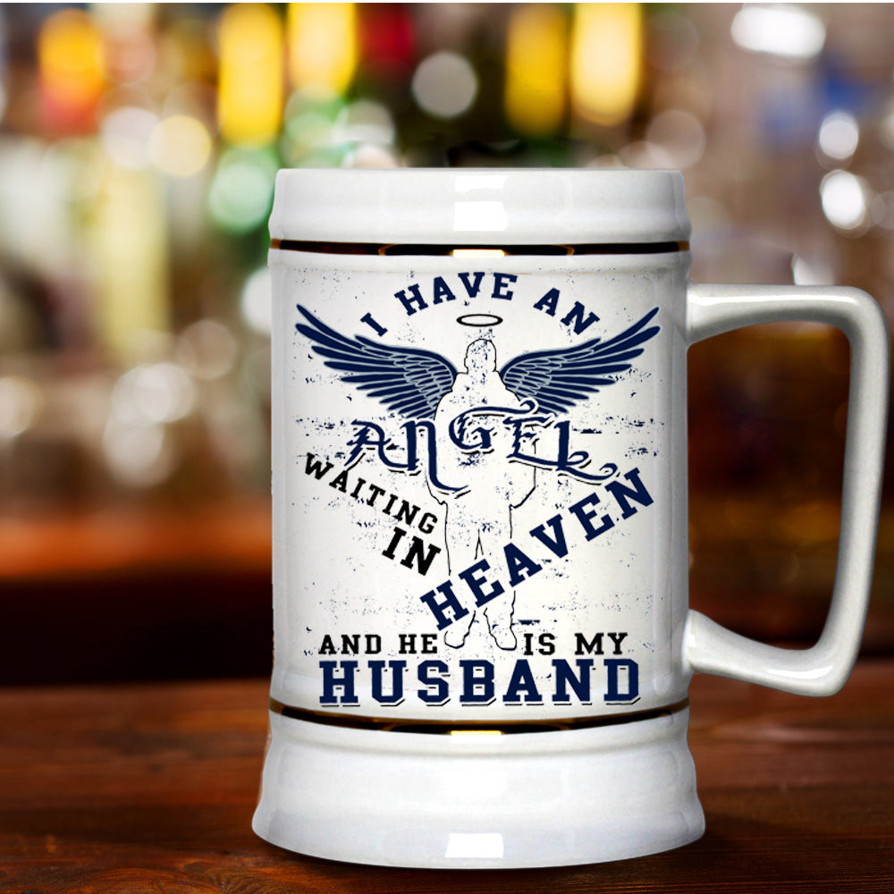 My Husband Beer Stein 22oz, I Have An Angel Waiting In Heaven Beer Mug