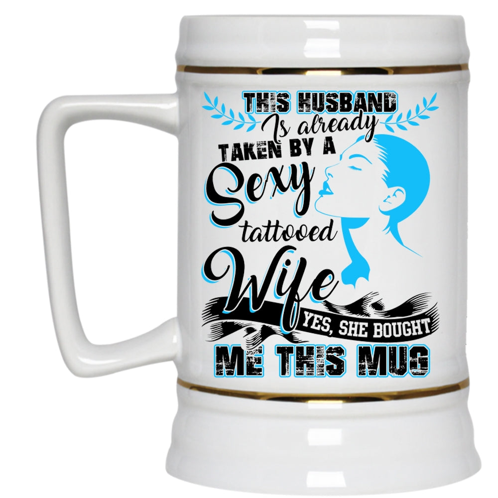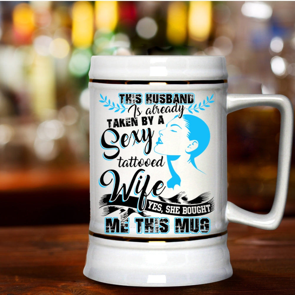 My Husband Beer Stein 22oz, Taken By A Tattooed Wife Beer Mug