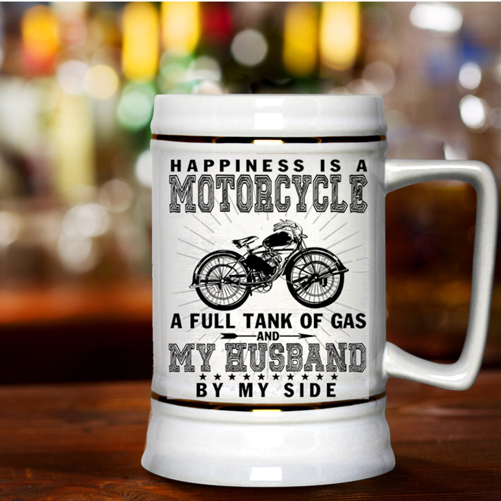 My Husband By My Side Beer Stein 22oz, Happiness Is A Motorcycle Beer Mug
