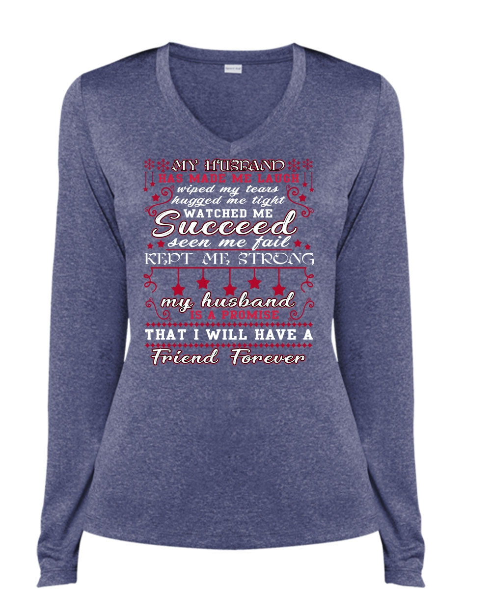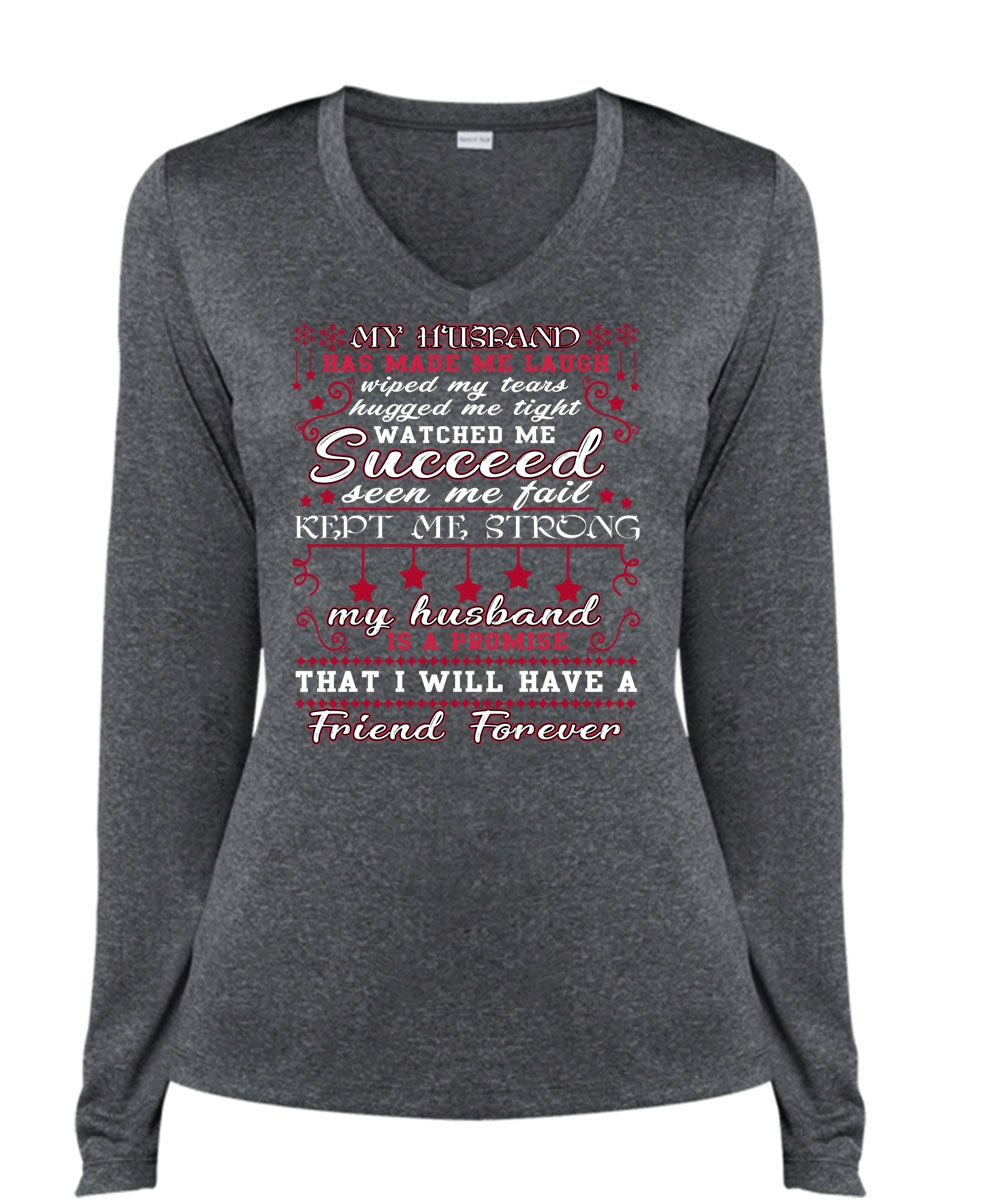 My Husband Has Made Me Laugh T Shirt, I Will Have A Friend Forever T Shirt, Cool Shirt (Ladies LS Heather V-Neck)