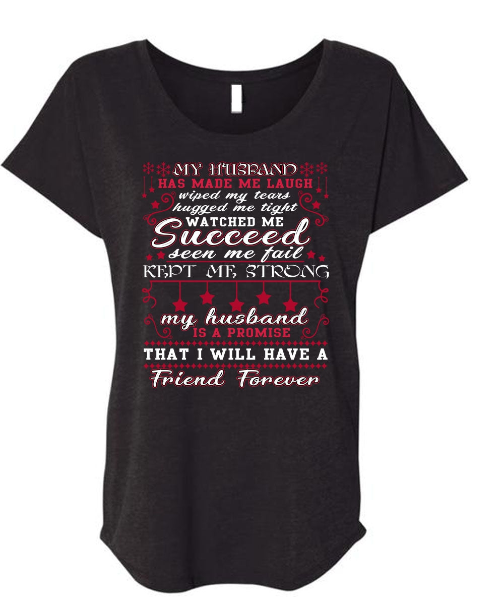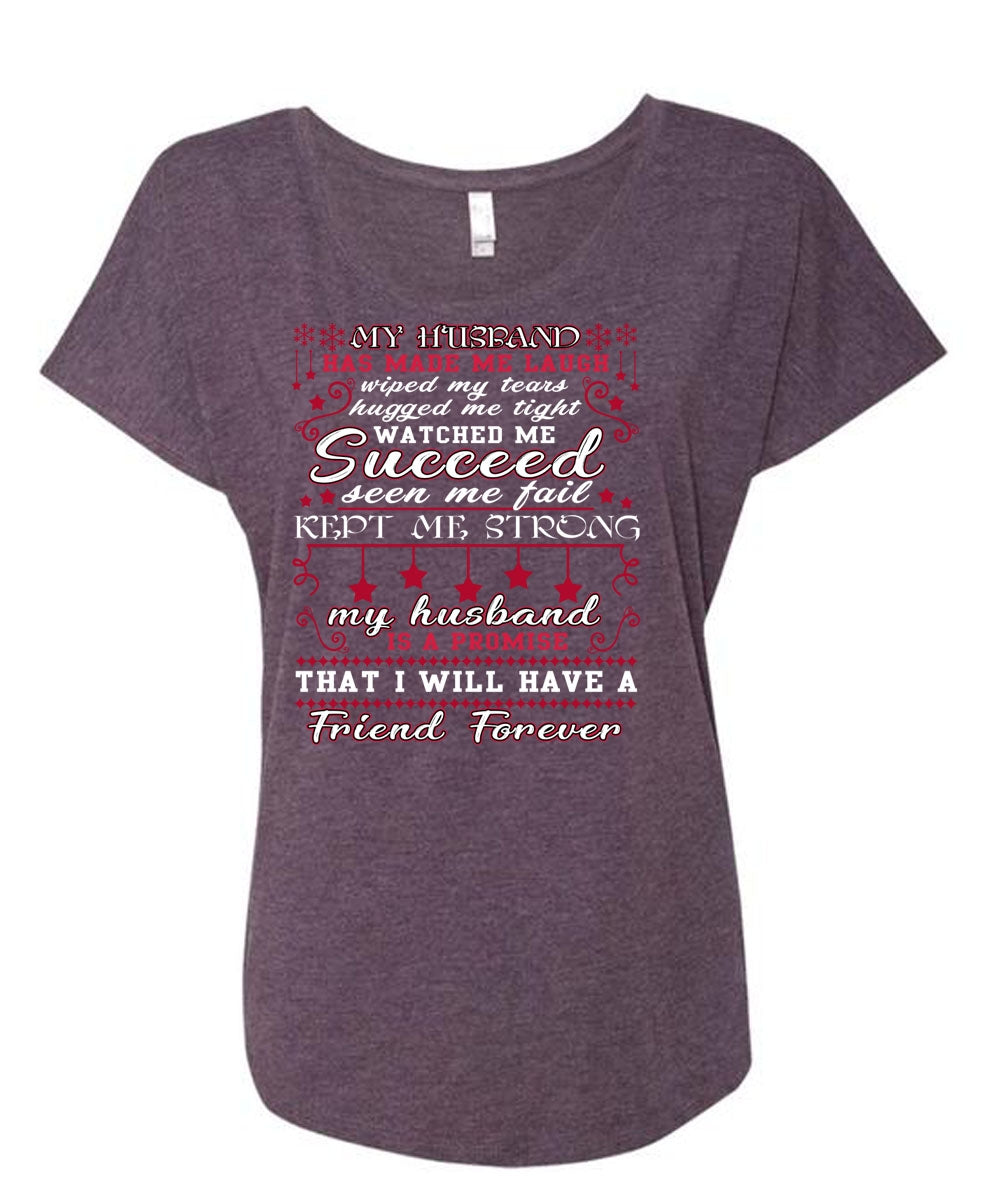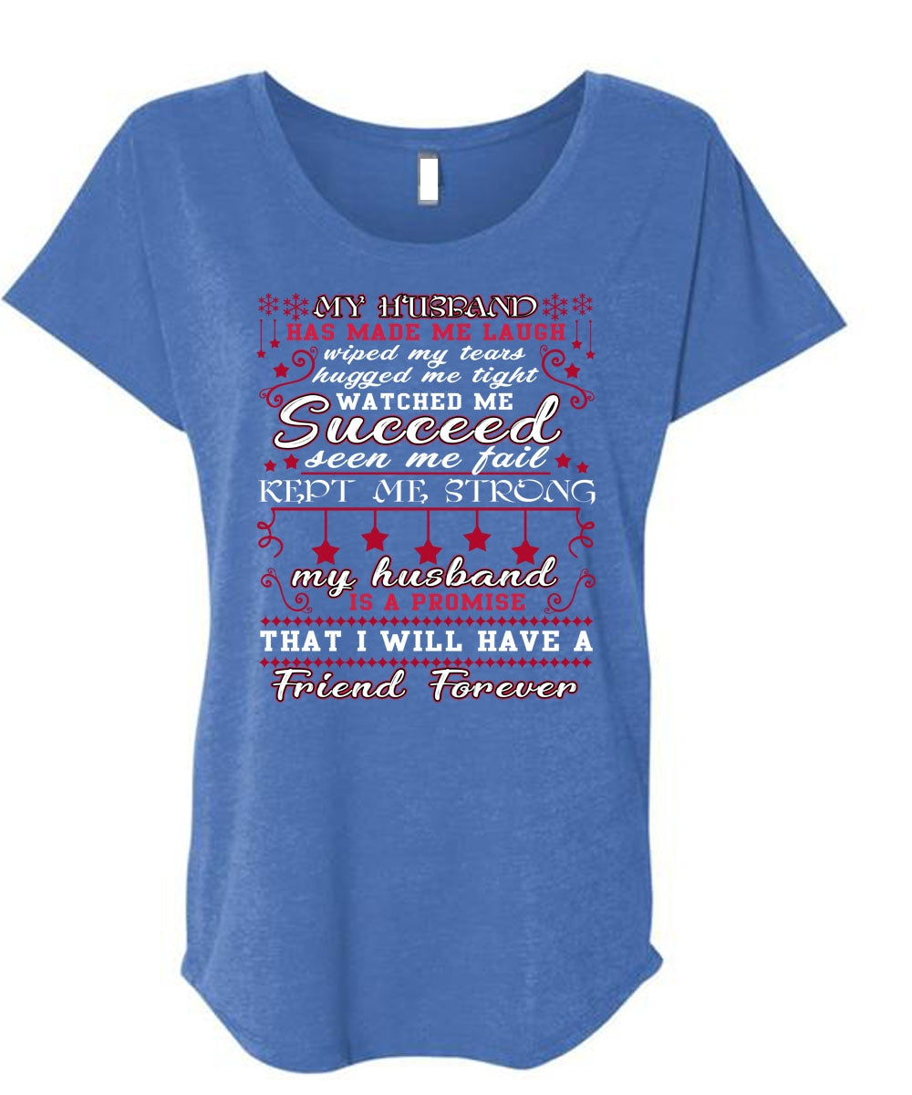 My Husband Has Made Me Laugh T Shirt, I Will Have A Friend Forever T Shirt, Cool Shirt (Ladies' Triblend Dolman Sleeve)