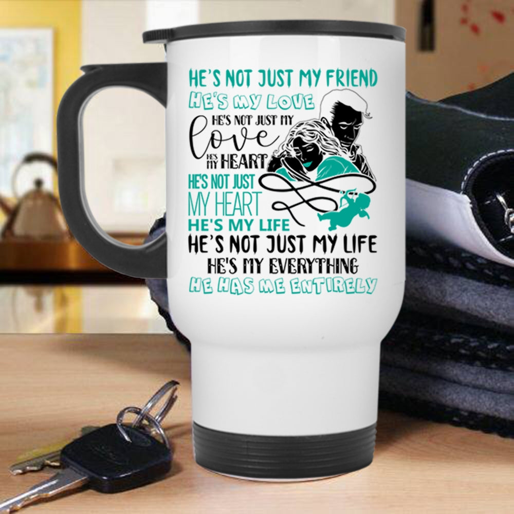 My Husband Has Me Entirely Travel Mug, He's My Love He's My Life Mug