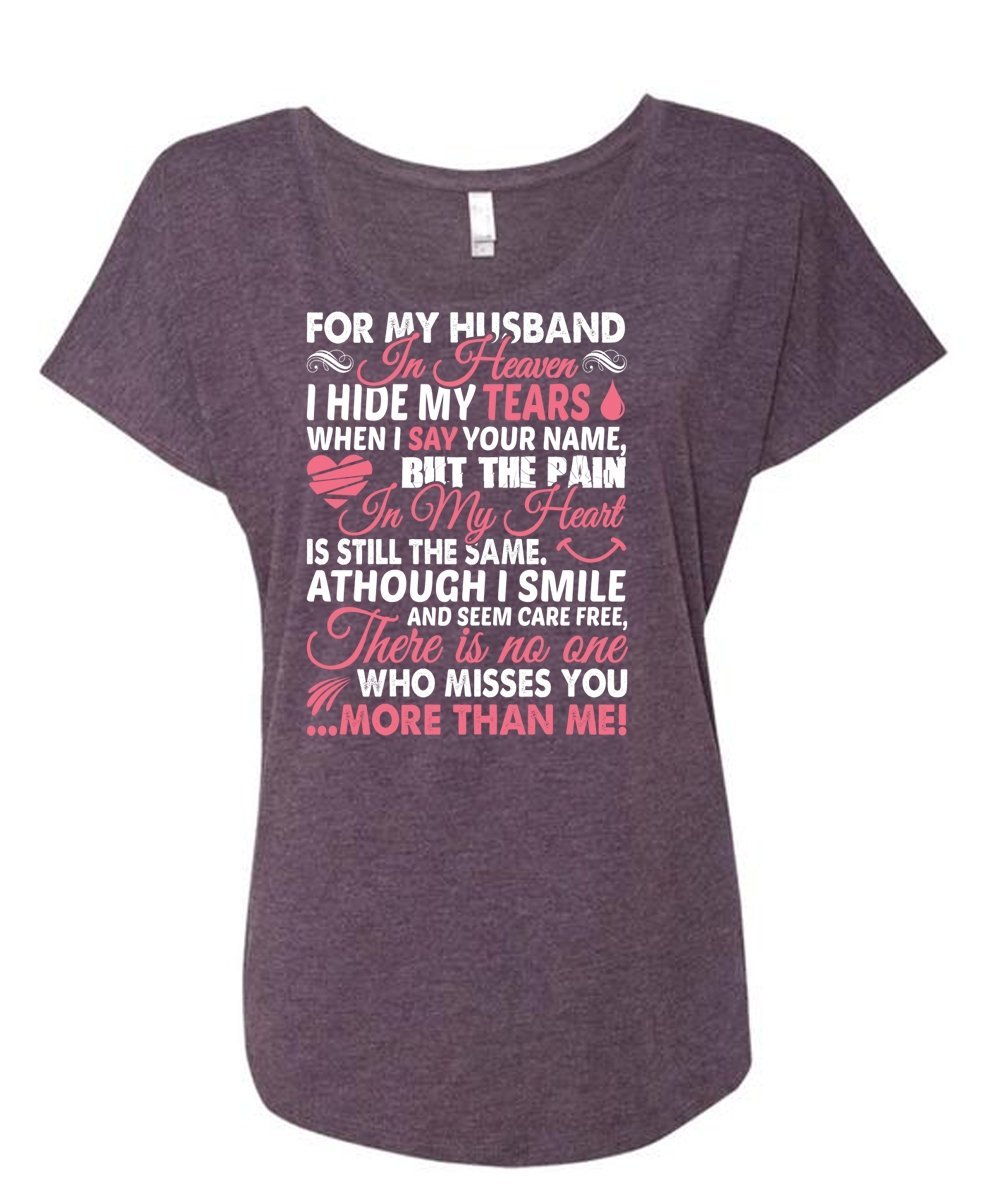 My Husband In Heaven T Shirt, The Pain In My Heart Is Still The Same T Shirt (Ladies' Triblend Dolman Sleeve)
