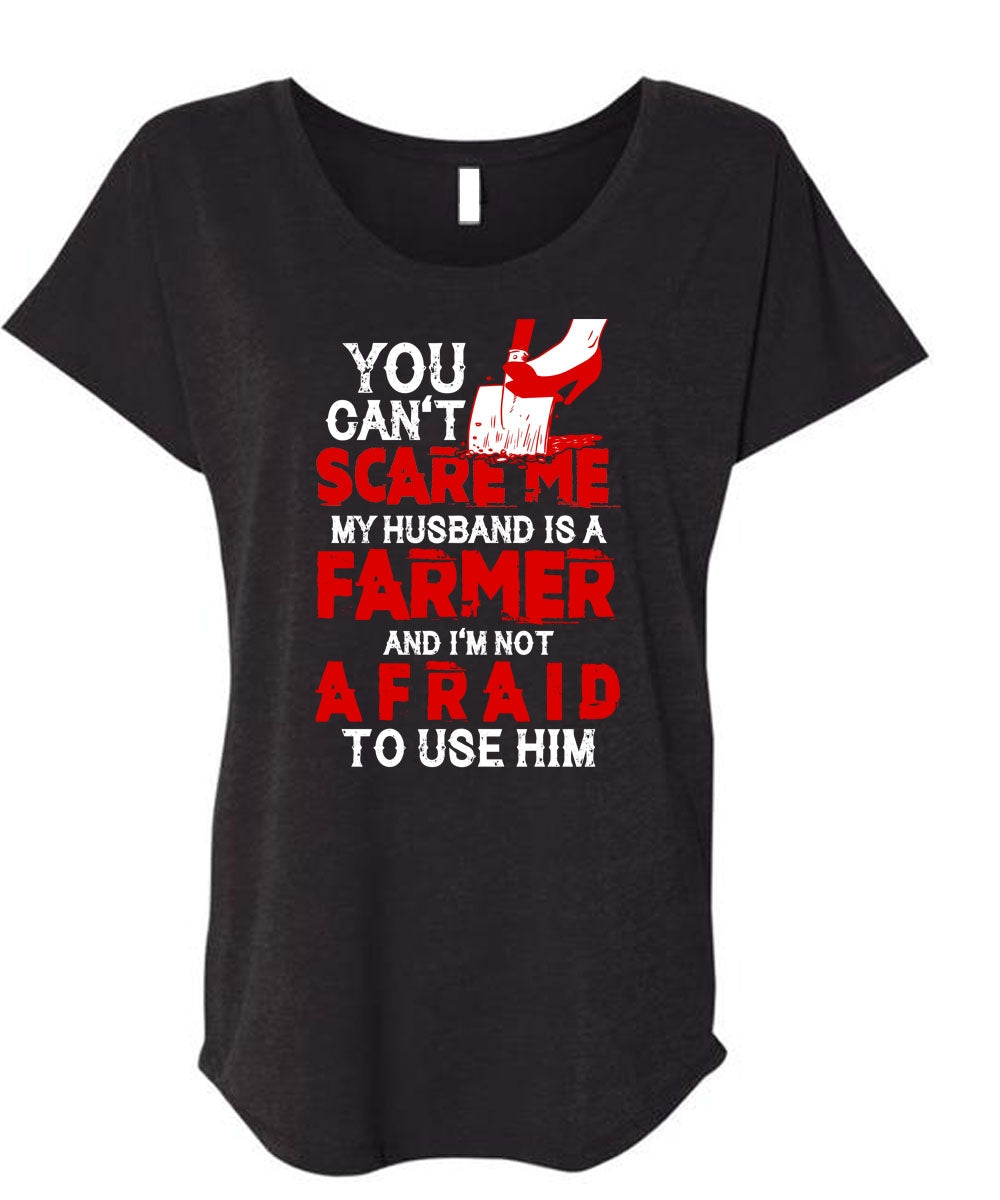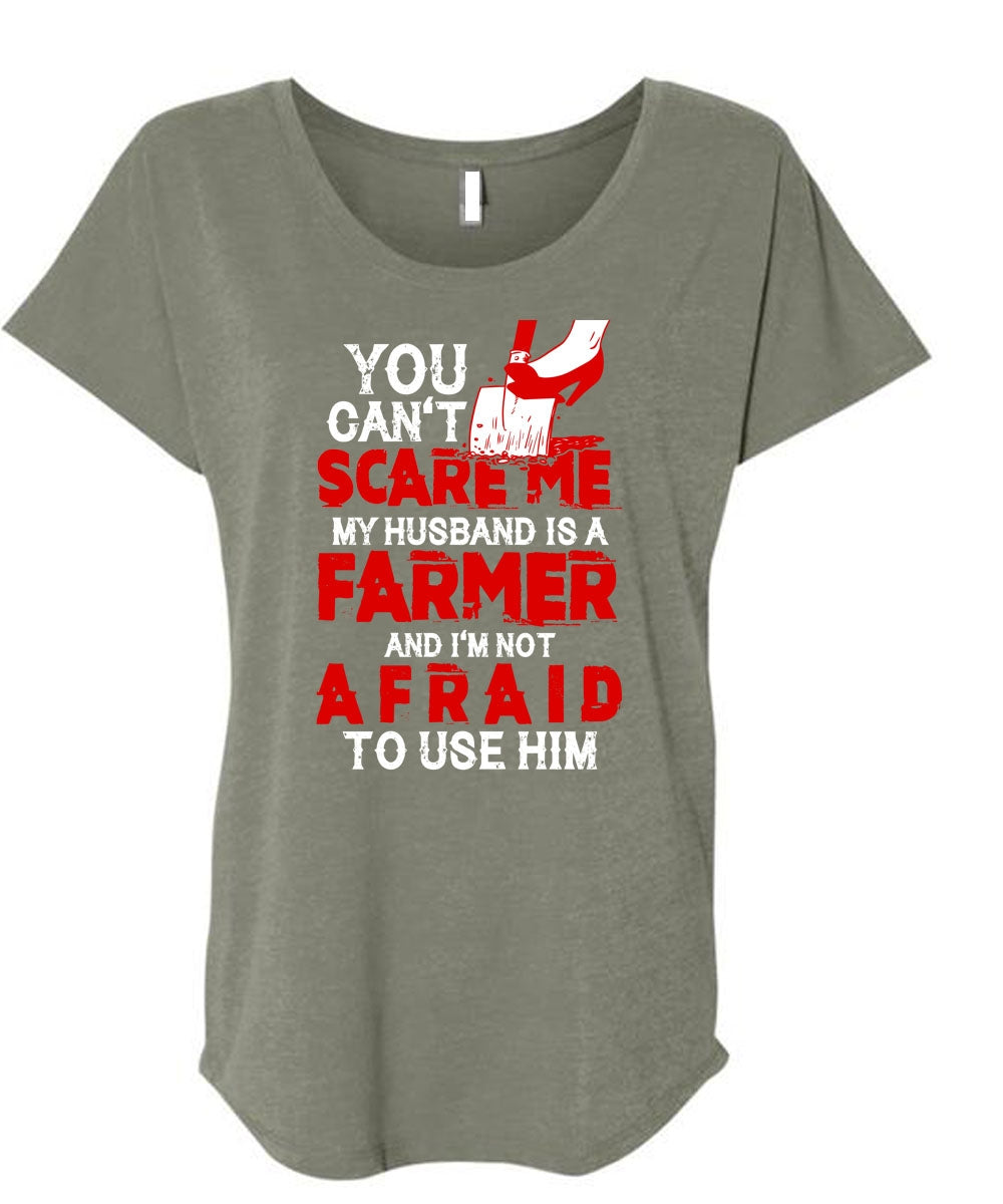My Husband Is A Farmer T Shirt, You Can't Scare Me T Shirt, Cool Shirt (Ladies' Triblend Dolman Sleeve)