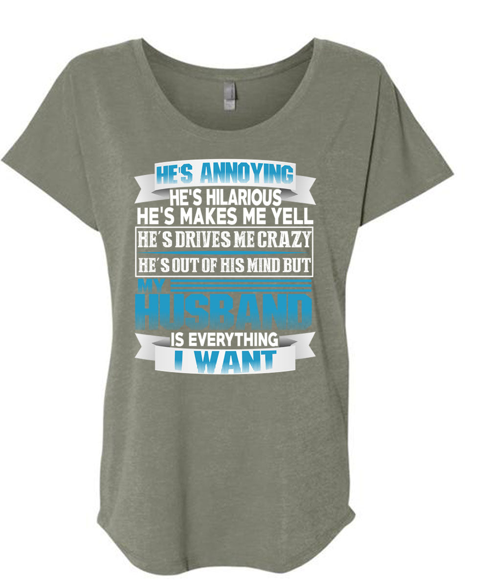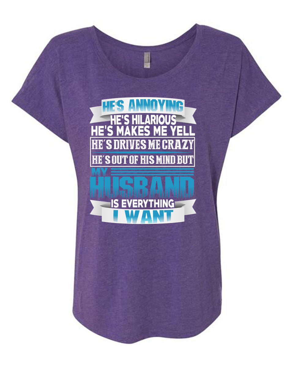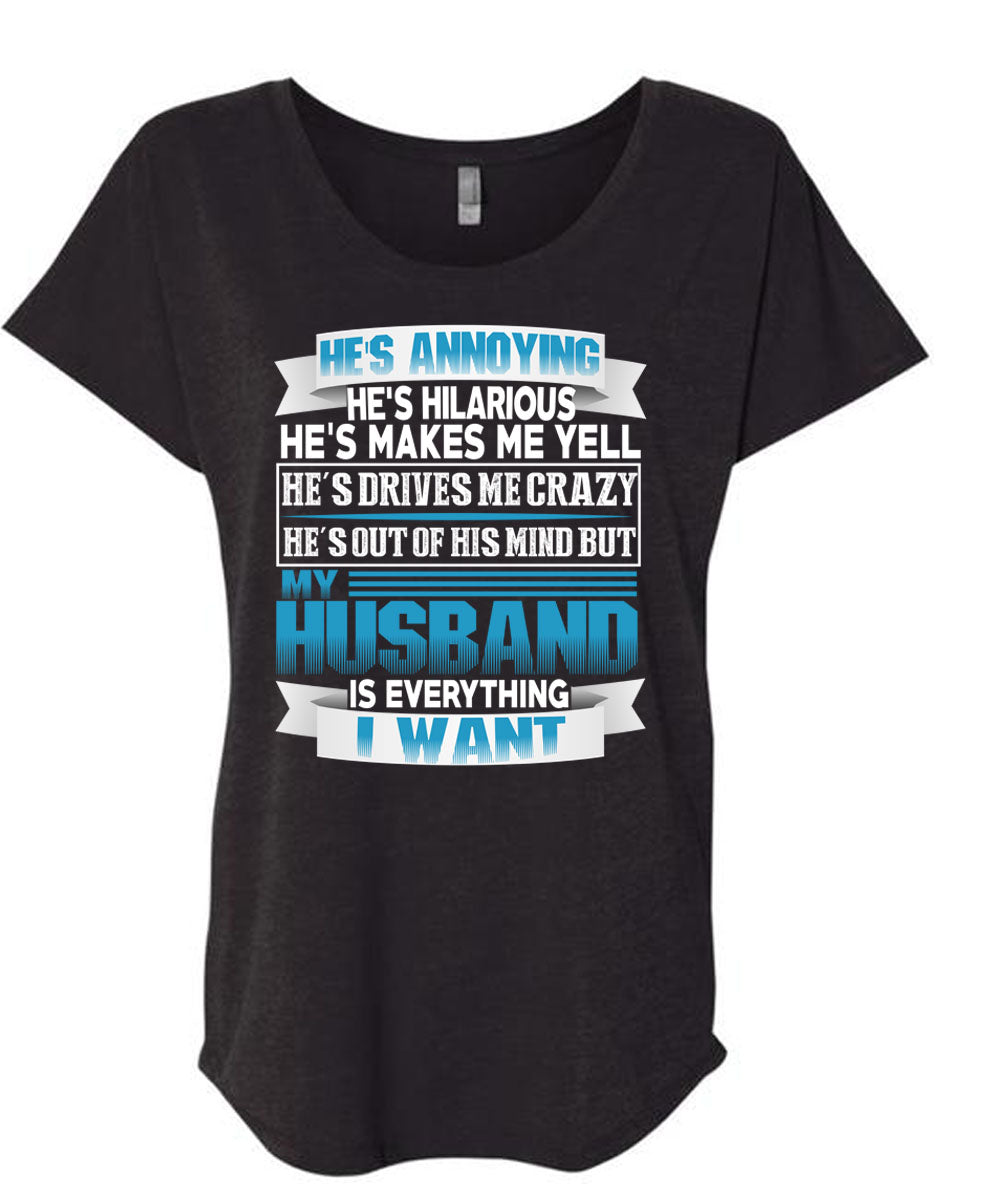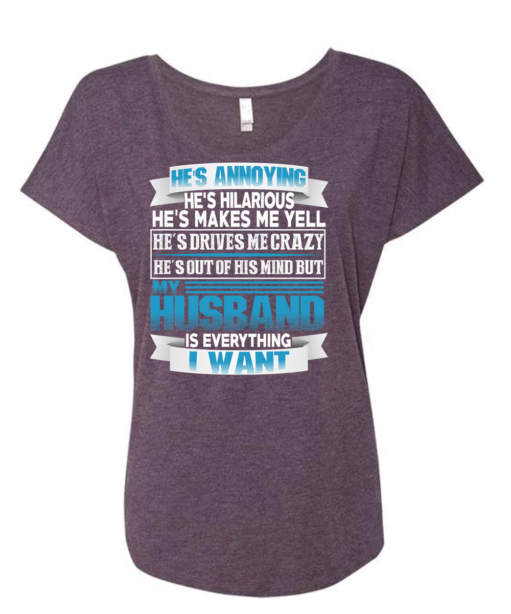 My Husband Is Everything I Want T Shirt, He's Annoying T Shirt, Cool Shirt (Ladies' Triblend Dolman Sleeve)