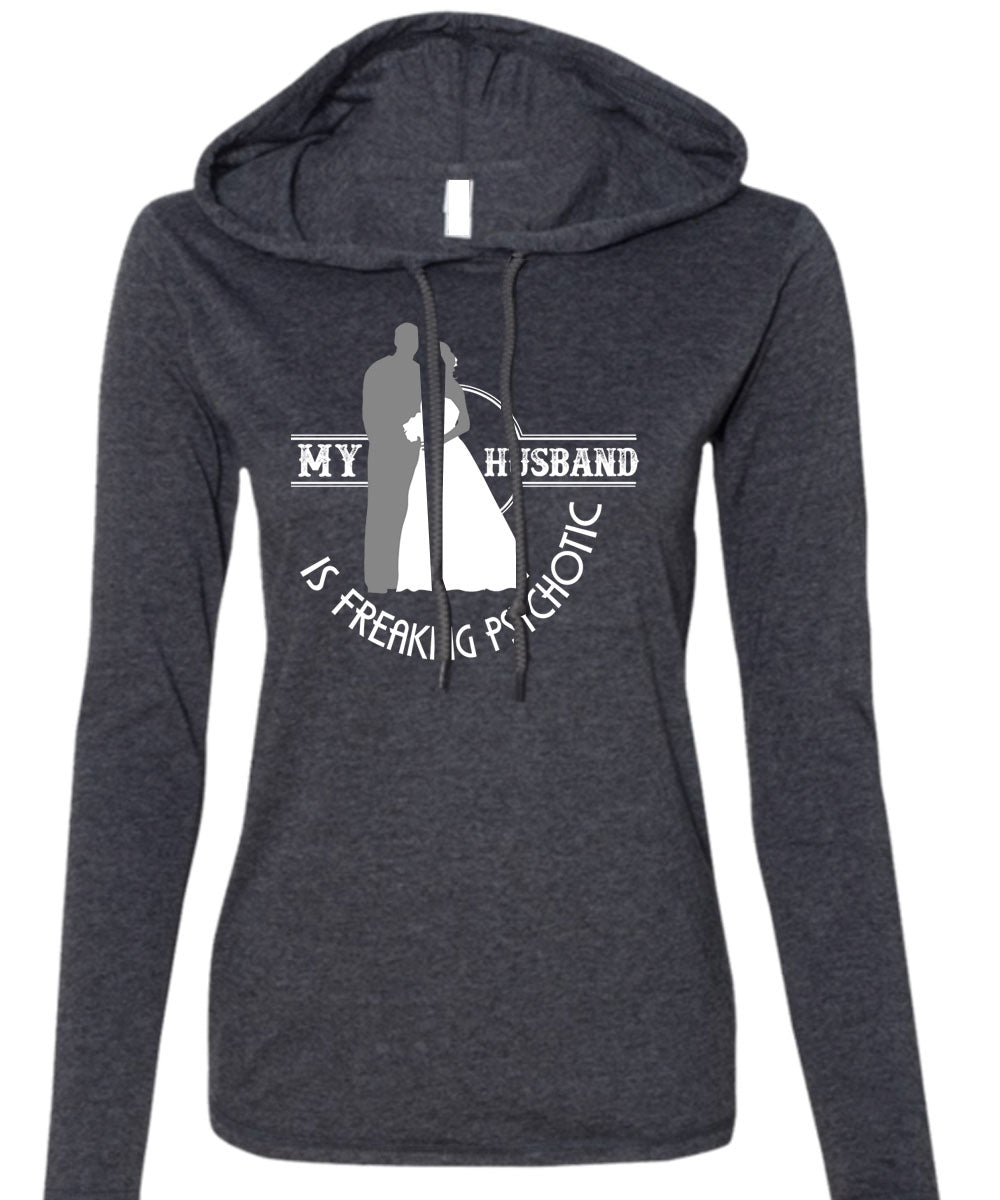 My Husband Is Freaking Psychotic T Shirt, Being A Wife T Shirt (Anvil Ladies Ringspun Hooded)