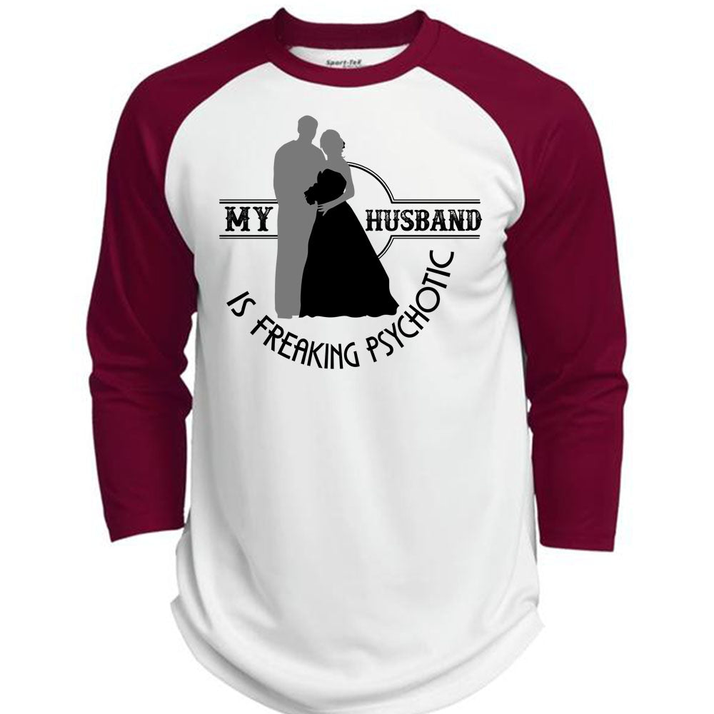 My Husband Is Freaking Psychotic T Shirt, I Love Husband T Shirt, Awesome T-Shirts (Polyester Game Baseball Jersey)