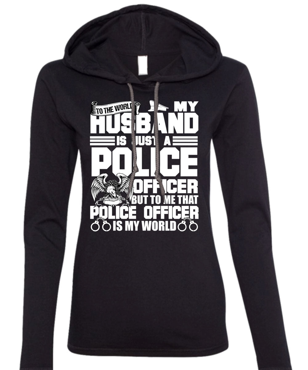 My Husband Is Just A Police Officer T Shirt, Being A Police T Shirt (Anvil Ladies Ringspun Hooded)