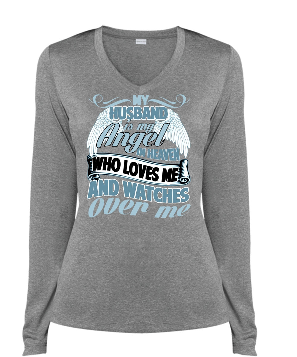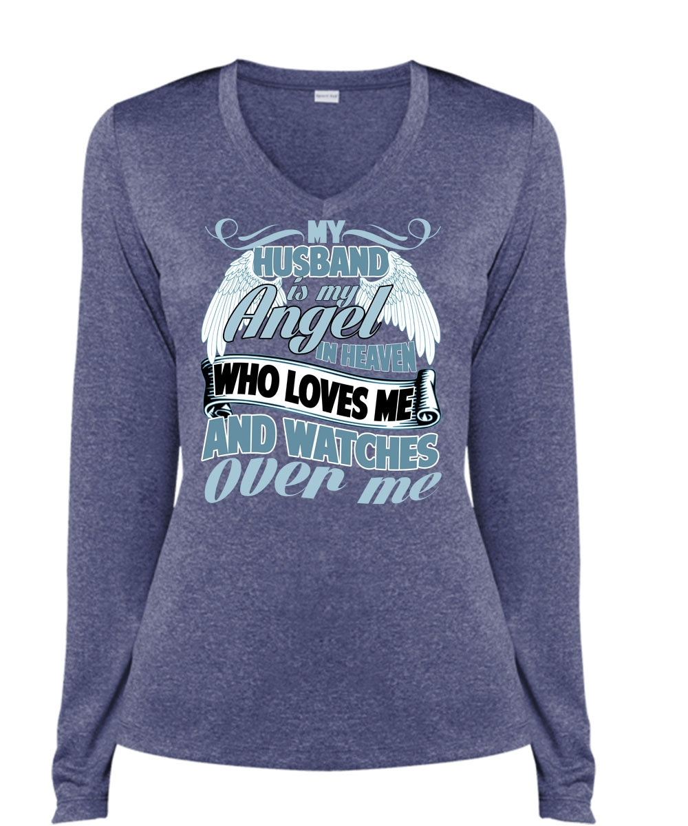 My Husband Is My Angel In Heaven T Shirt, Being A Husband T Shirt, Cool Shirt (Ladies LS Heather V-Neck)