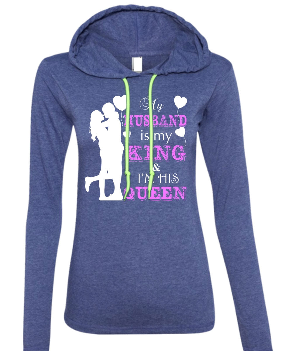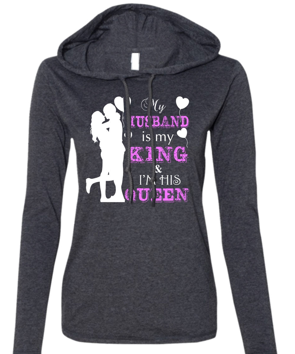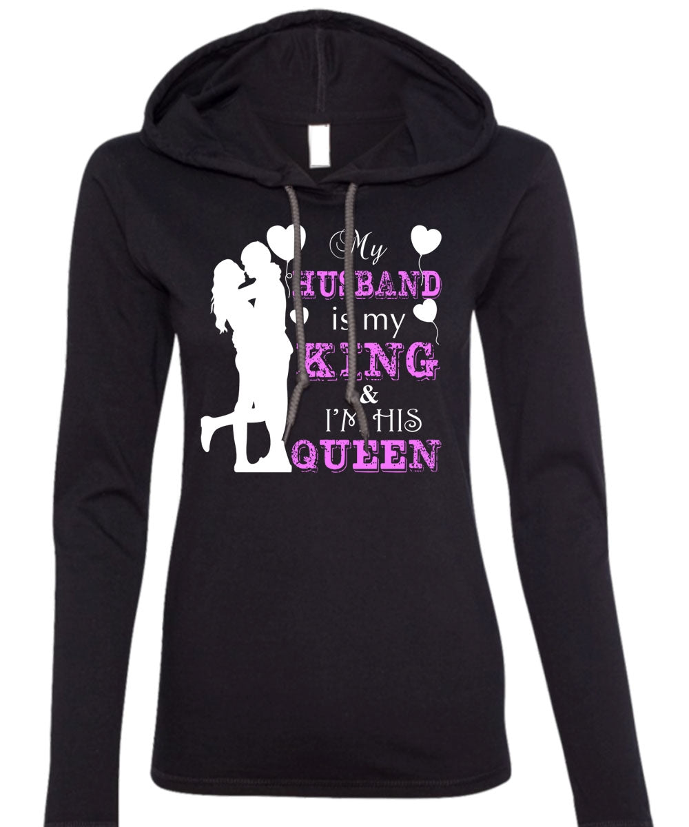 My Husband Is My King T Shirt, I'm His Queen T Shirt (Anvil Ladies Ringspun Hooded)
