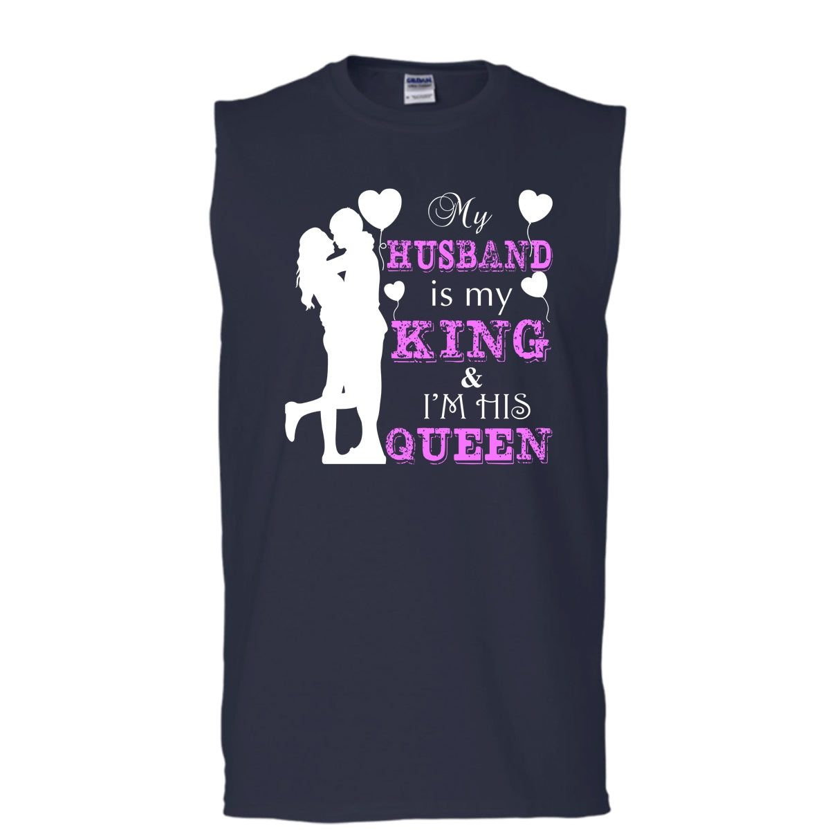 My Husband Is My King T Shirt, I'm His Queen T Shirt, Cool T Shirt (Men's Cotton Sleeveless)