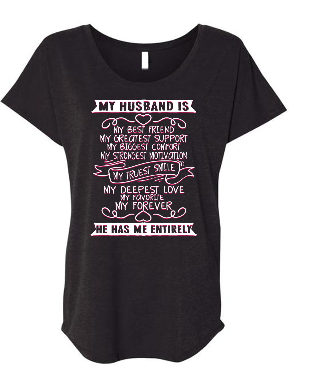 My Husband Is My Mest Friend T Shirt, He Has Me Entirely T Shirt, Cool Shirt (Ladies' Triblend Dolman Sleeve)