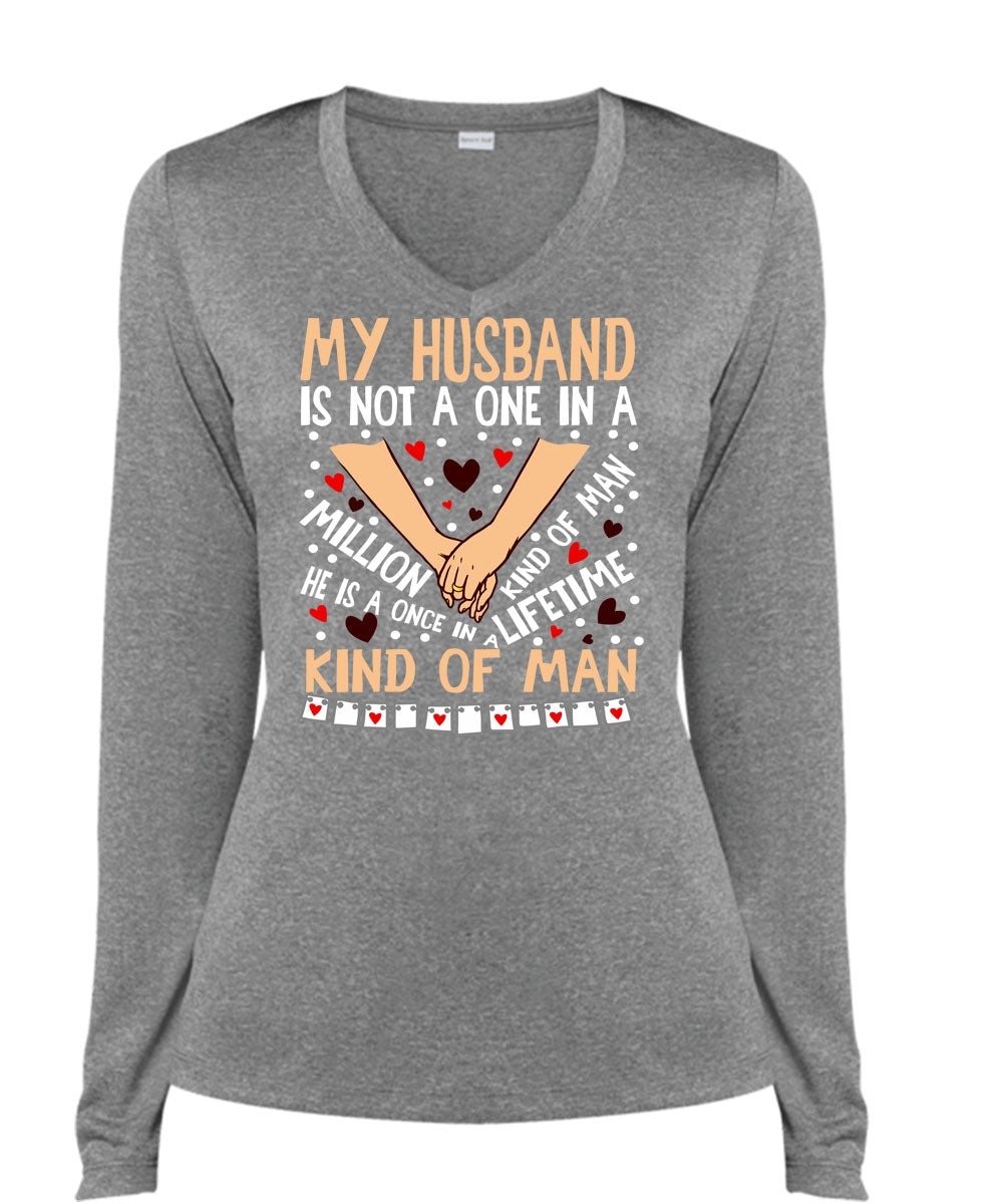 My Husband Is Not A One In A Million T Shirt, Kind Of Man T Shirt, Cool Shirt (Ladies LS Heather V-Neck)