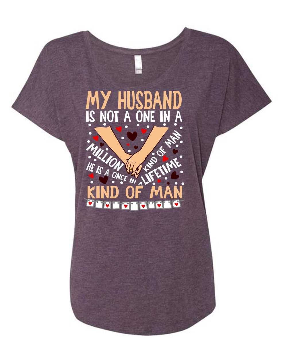 My Husband Is Not A One In A Million T Shirt, Kind Of Man T Shirt, Cool Shirt (Ladies' Triblend Dolman Sleeve)