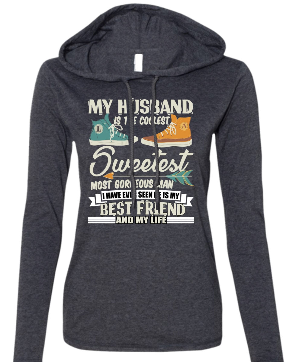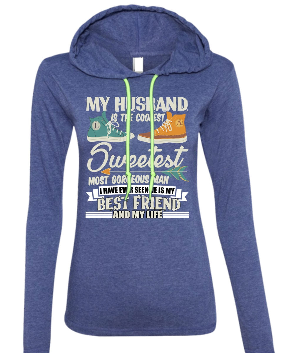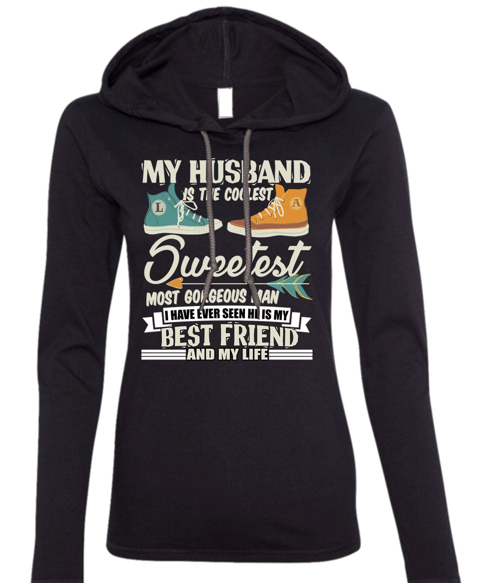 My Husband Is The Coolest T Shirt, He Is My Best Friend T Shirt (Anvil Ladies Ringspun Hooded)