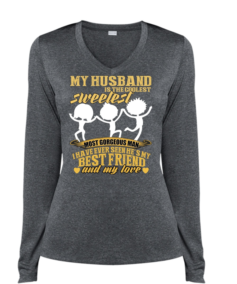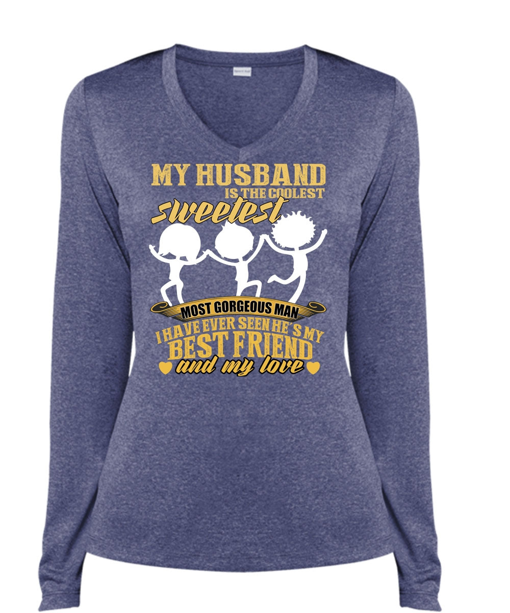 My Husband Is The Coolest T Shirt, He's My Best Friend T Shirt, Cool Shirt (Ladies LS Heather V-Neck)