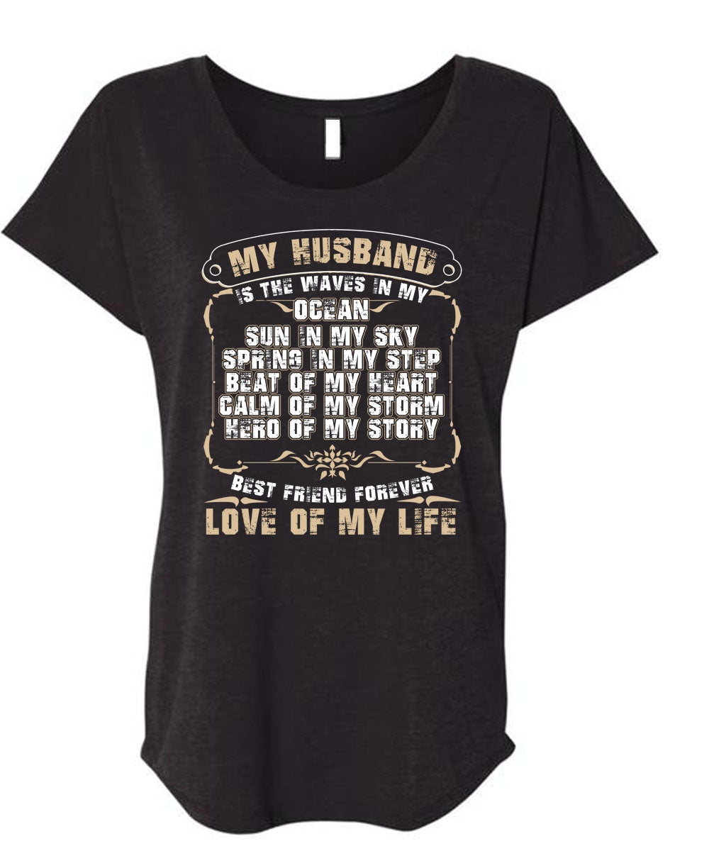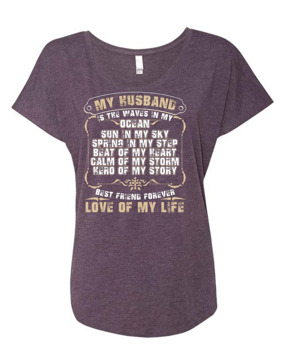 My Husband Is The Waves In My Ocean T Shirt, Love Of My Life T Shirt, Cool Shirt (Ladies' Triblend Dolman Sleeve)