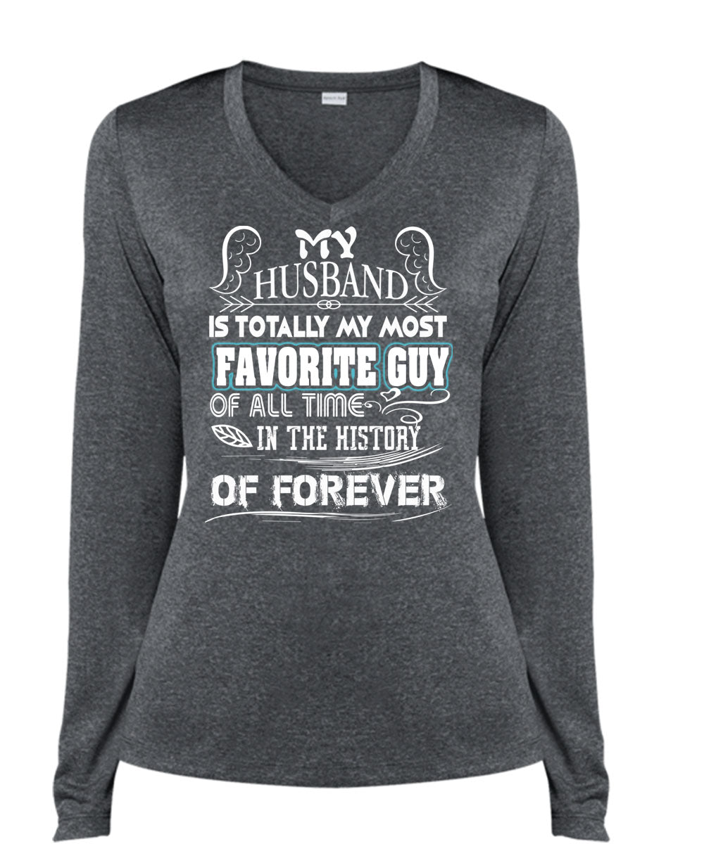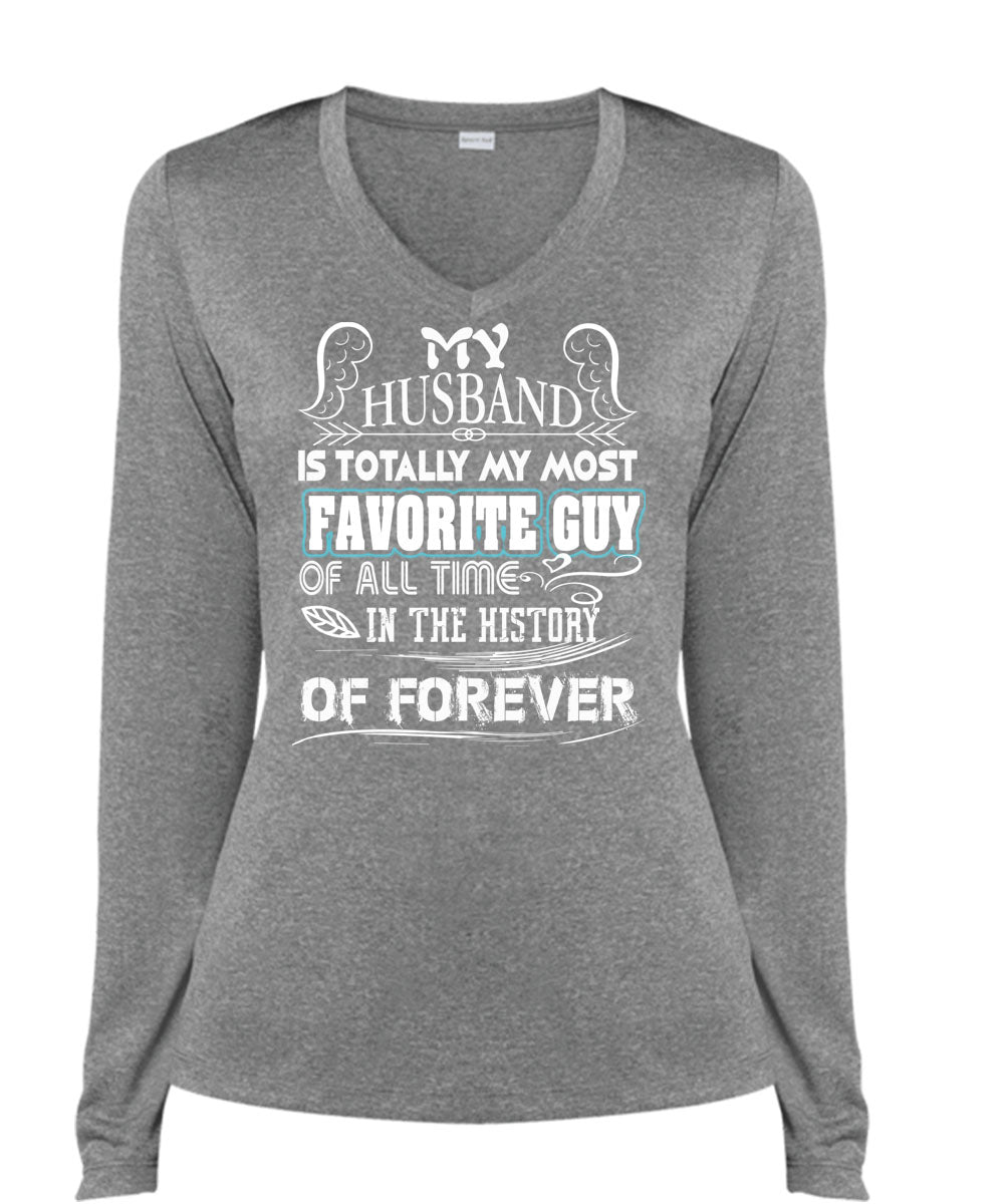 My Husband Is Totally My Most Favorite Guy T Shirt, All Time In The History Of Forever T Shirt, Cool Shirt (Ladies LS Heather V-Neck)