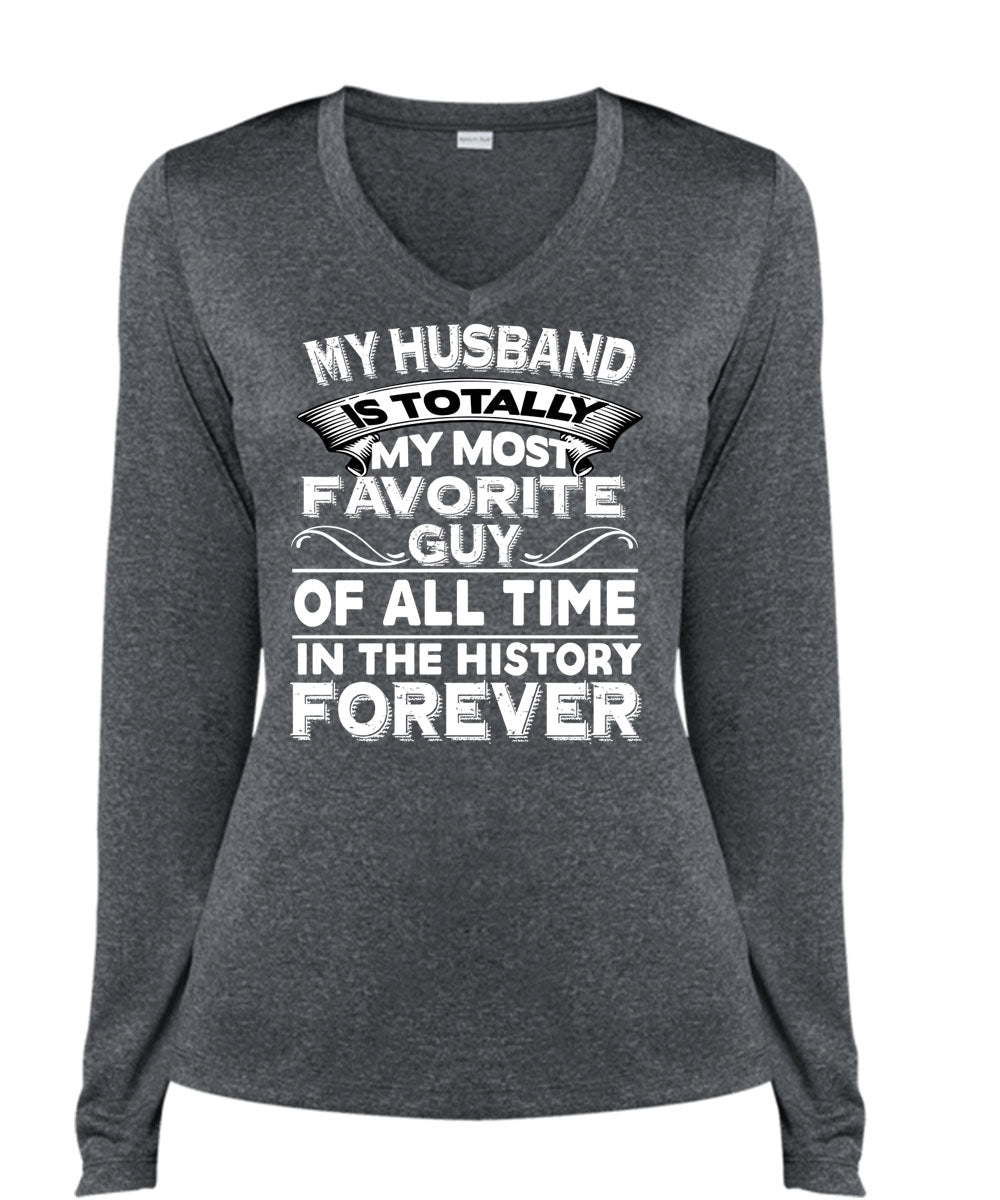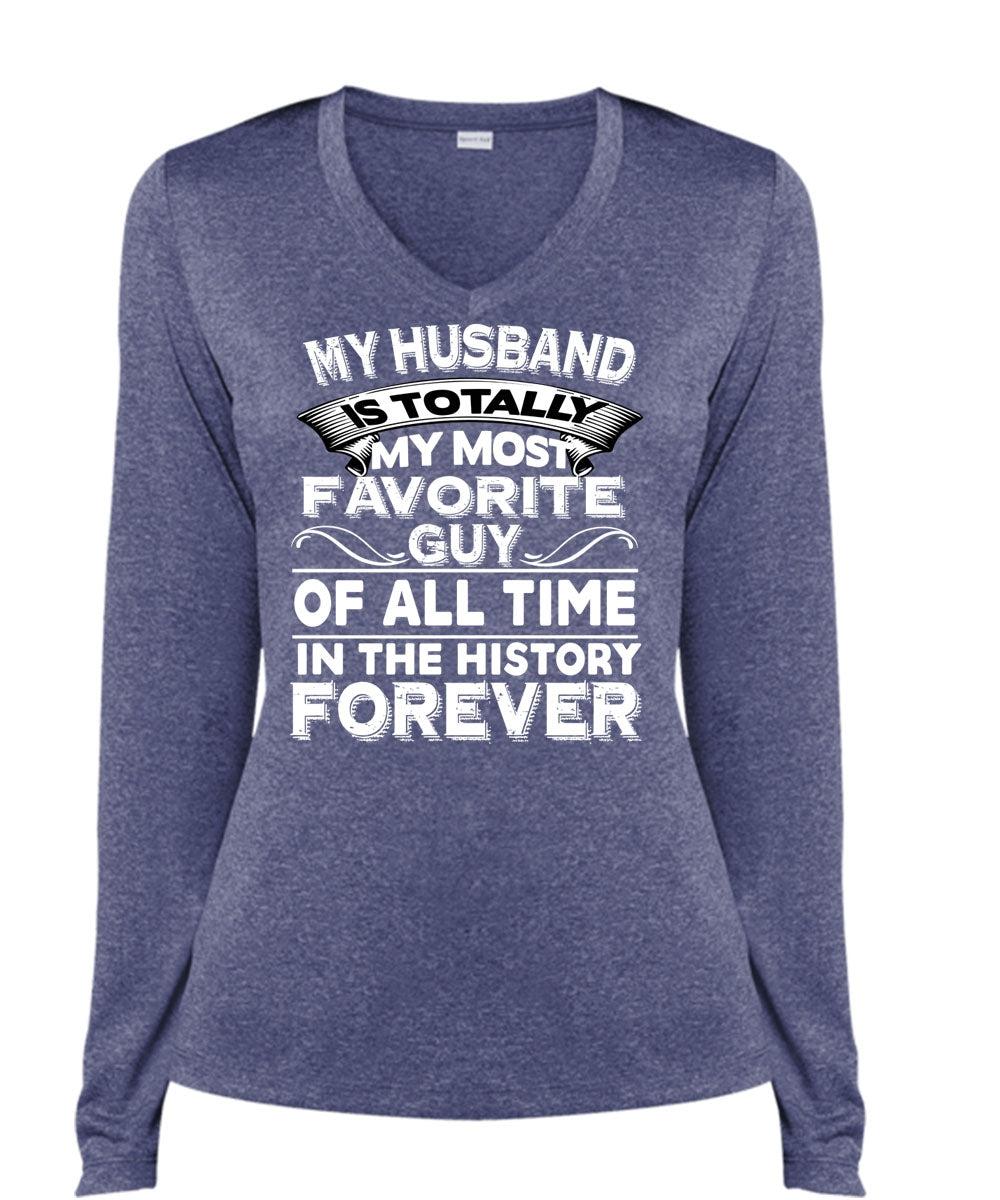 My Husband Is Totally My Most Favorite Guy T Shirt, The History Forever T Shirt, Cool Shirt (Ladies LS Heather V-Neck)