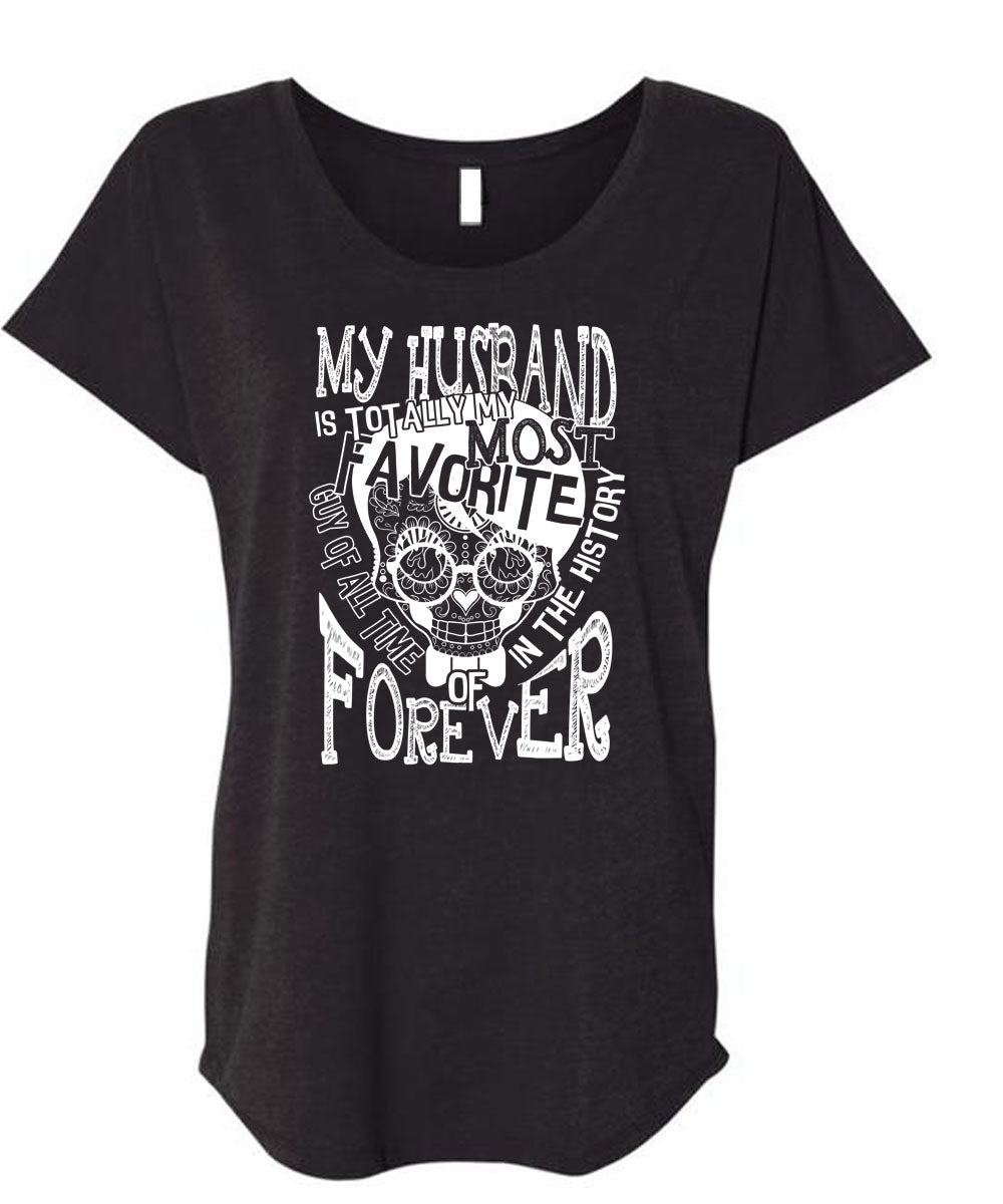 My Husband Is Totally My Most Favorite T Shirt, Being A Wife T Shirt, Cool Shirt (Ladies' Triblend Dolman Sleeve)