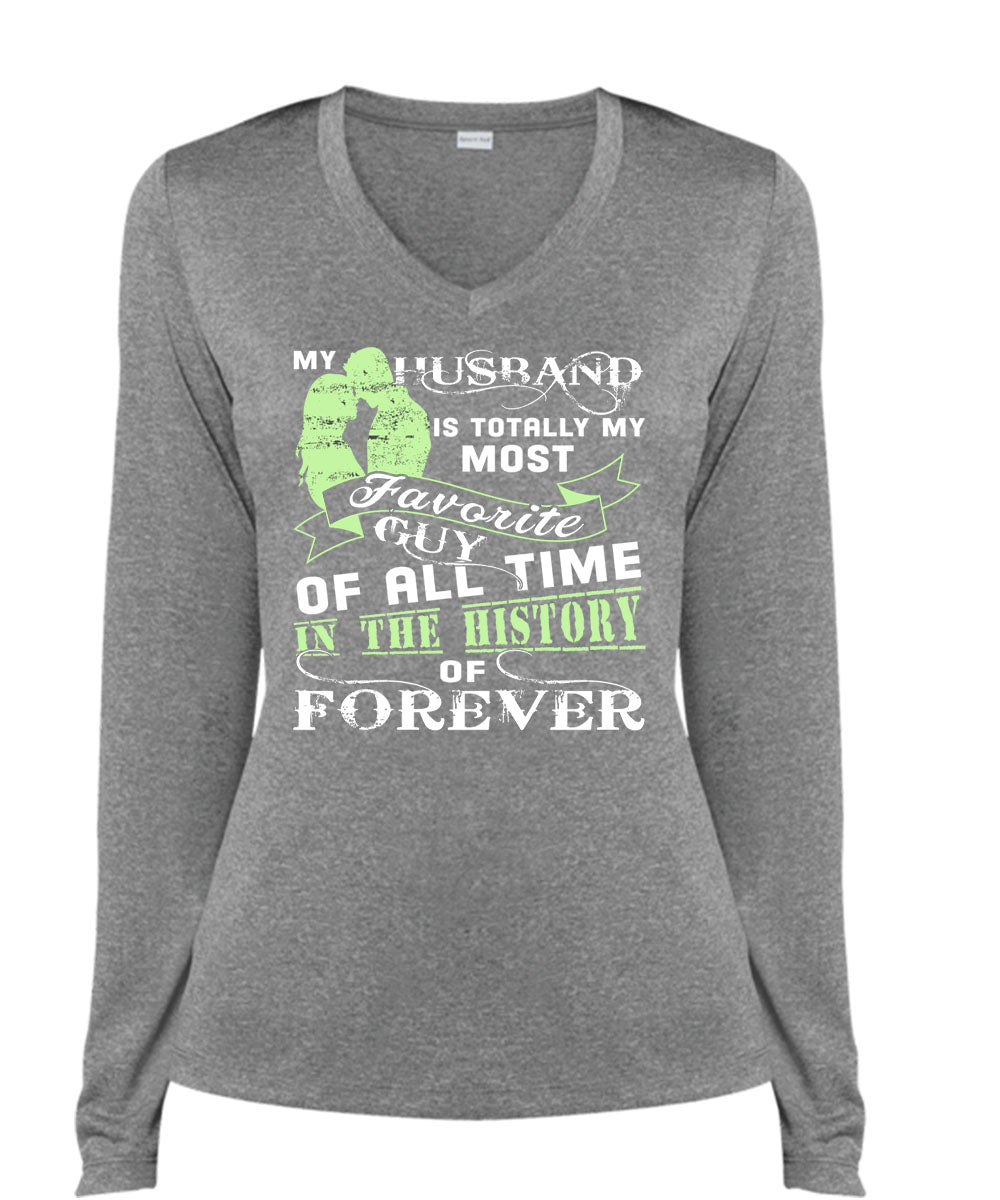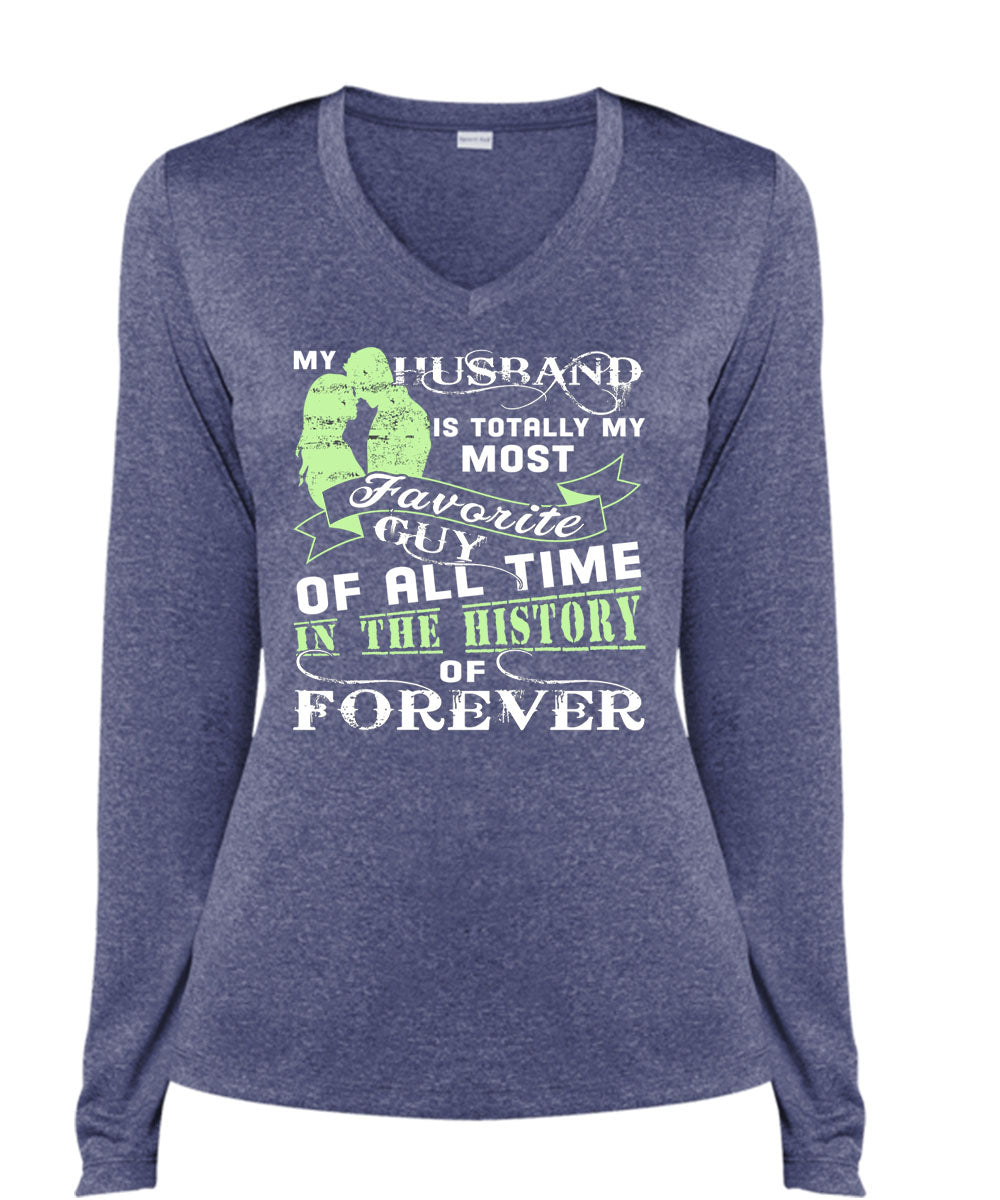 My Husband Is Totally My Most Favorite T Shirt, Guy Of All Time In The History T Shirt, Cool Shirt (Ladies LS Heather V-Neck)