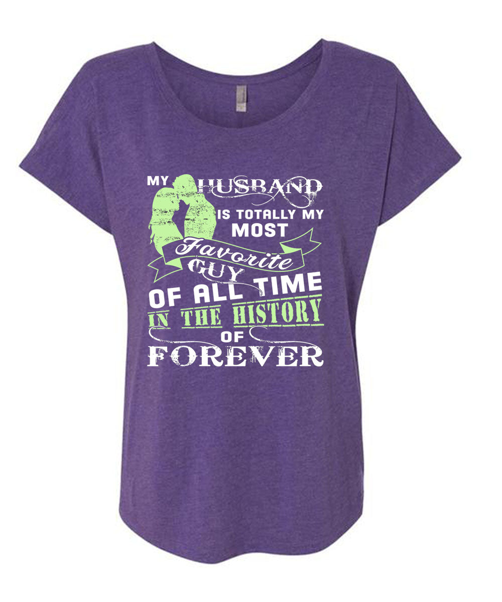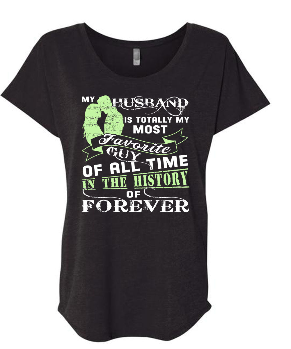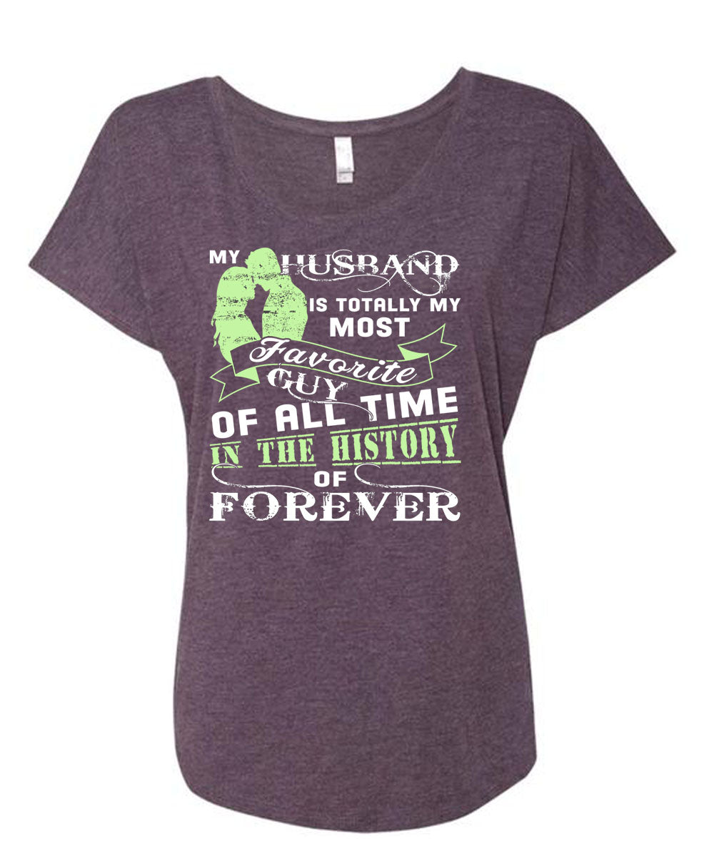 My Husband Is Totally My Most Favorite T Shirt, Guy Of All Time In The History T Shirt, Cool Shirt (Ladies' Triblend Dolman Sleeve)